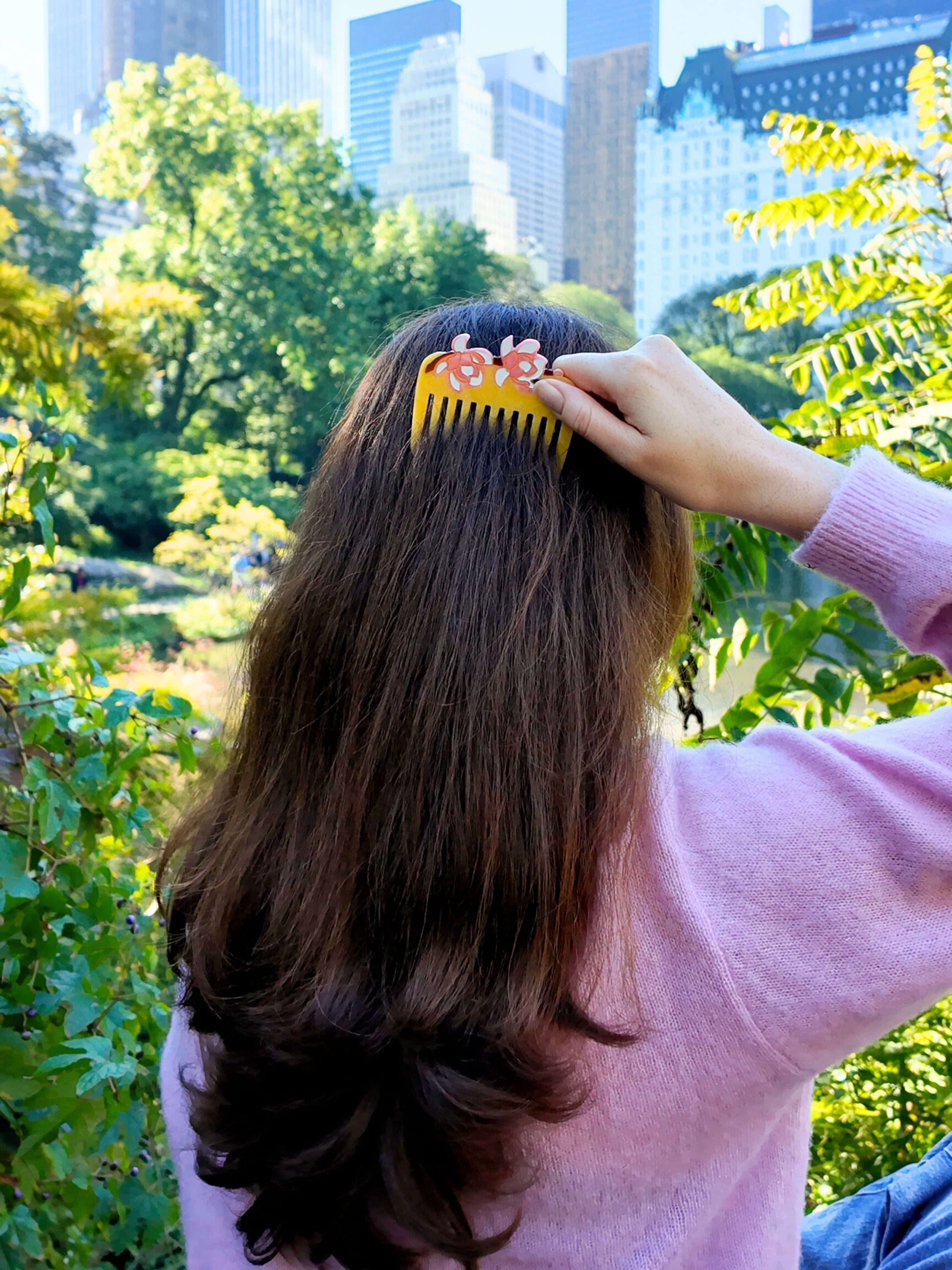 Hand-painted Magnolia Detangling Wide Tooth Comb | Eco-Friendly