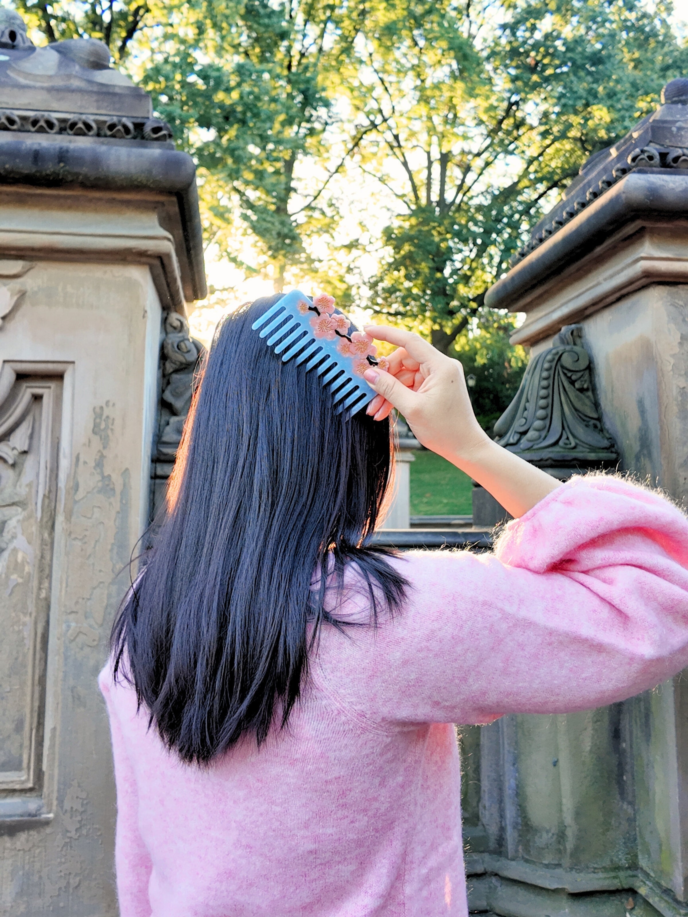 Hand-Painted Cherry Blossom Detangling Wide Tooth Hair Comb | Eco-Friendly