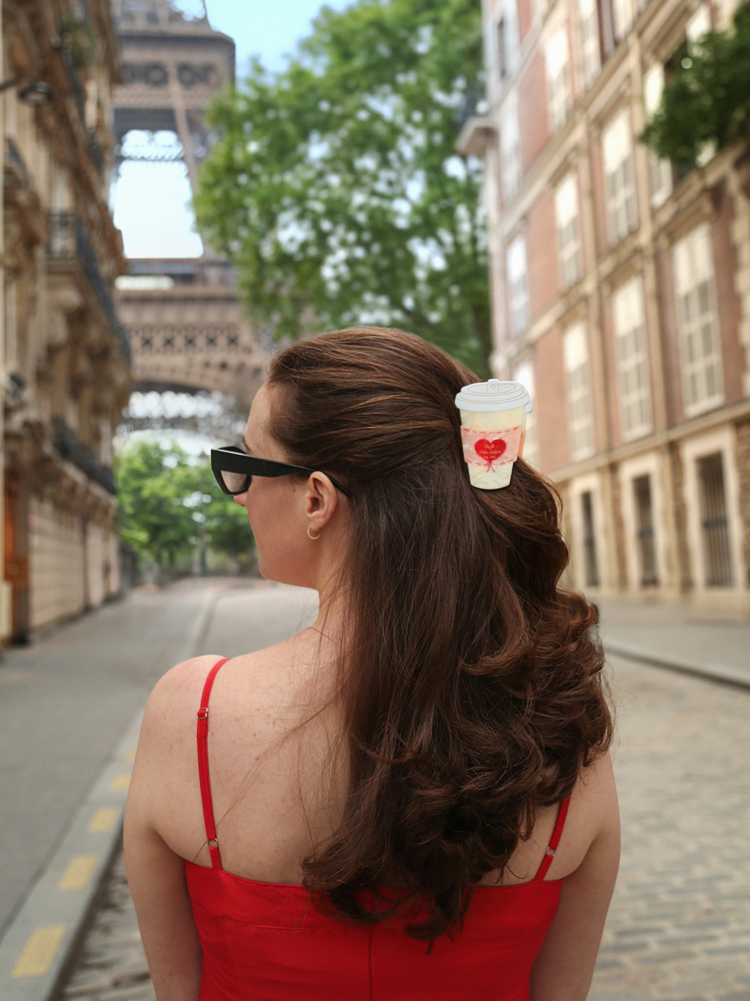 Hand-Painted Cafe Coffee Cup Heart Claw Clip | Eco-Friendly
