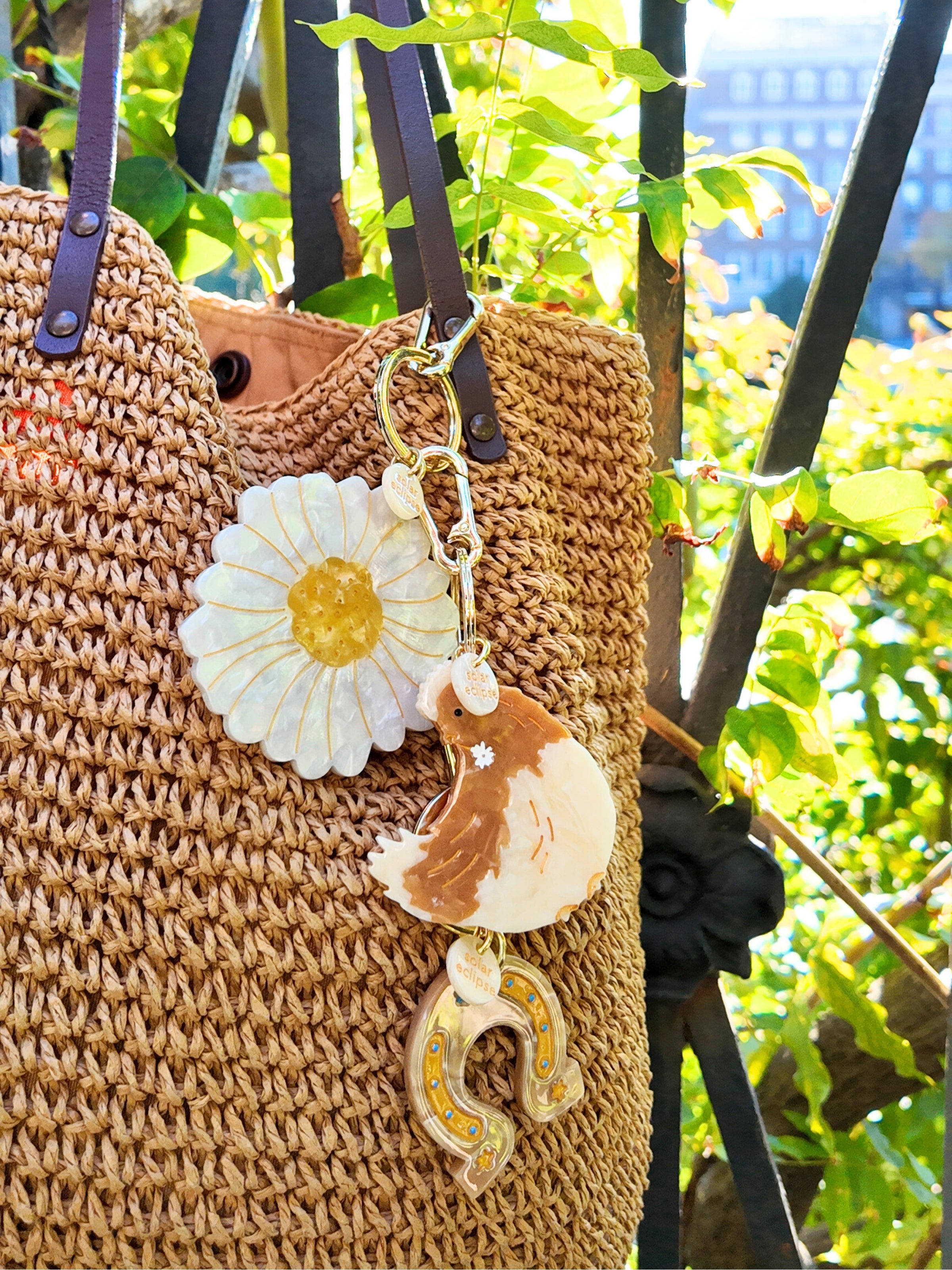 Hand-painted Vintage Daisy Bag Charm + Keychain | Eco-Friendly