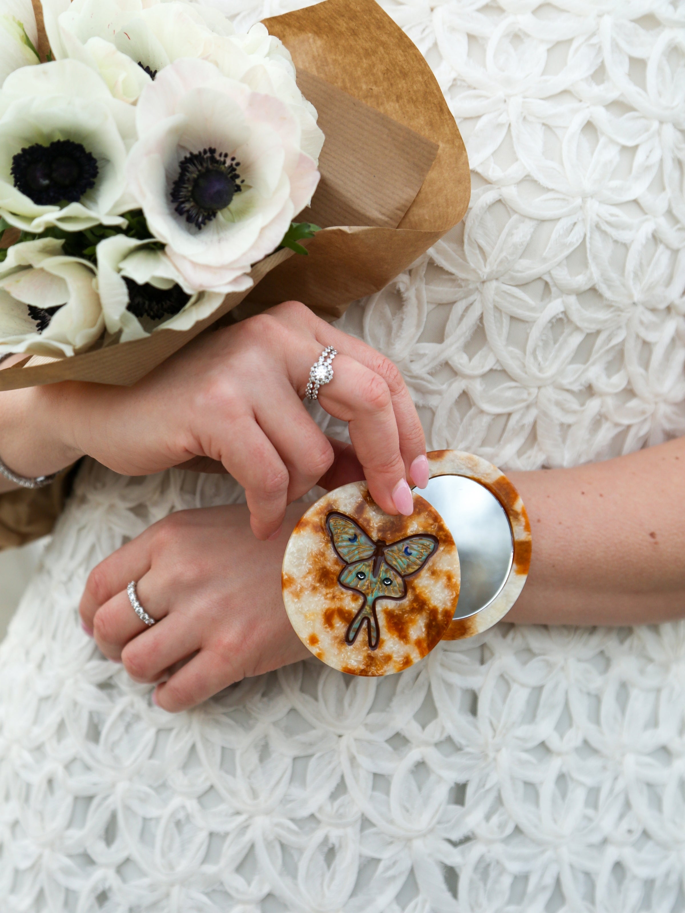 Hand-painted Luna Moth Compact Mirror | Eco-Friendly