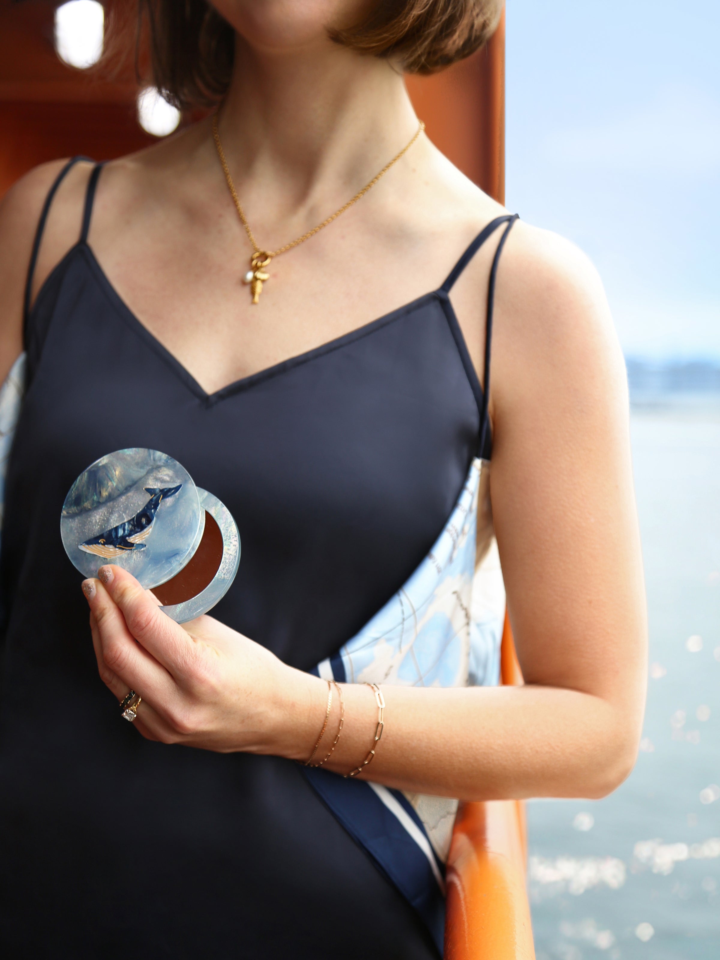 Hand-painted Whale Compact Mirror | Eco-Friendly