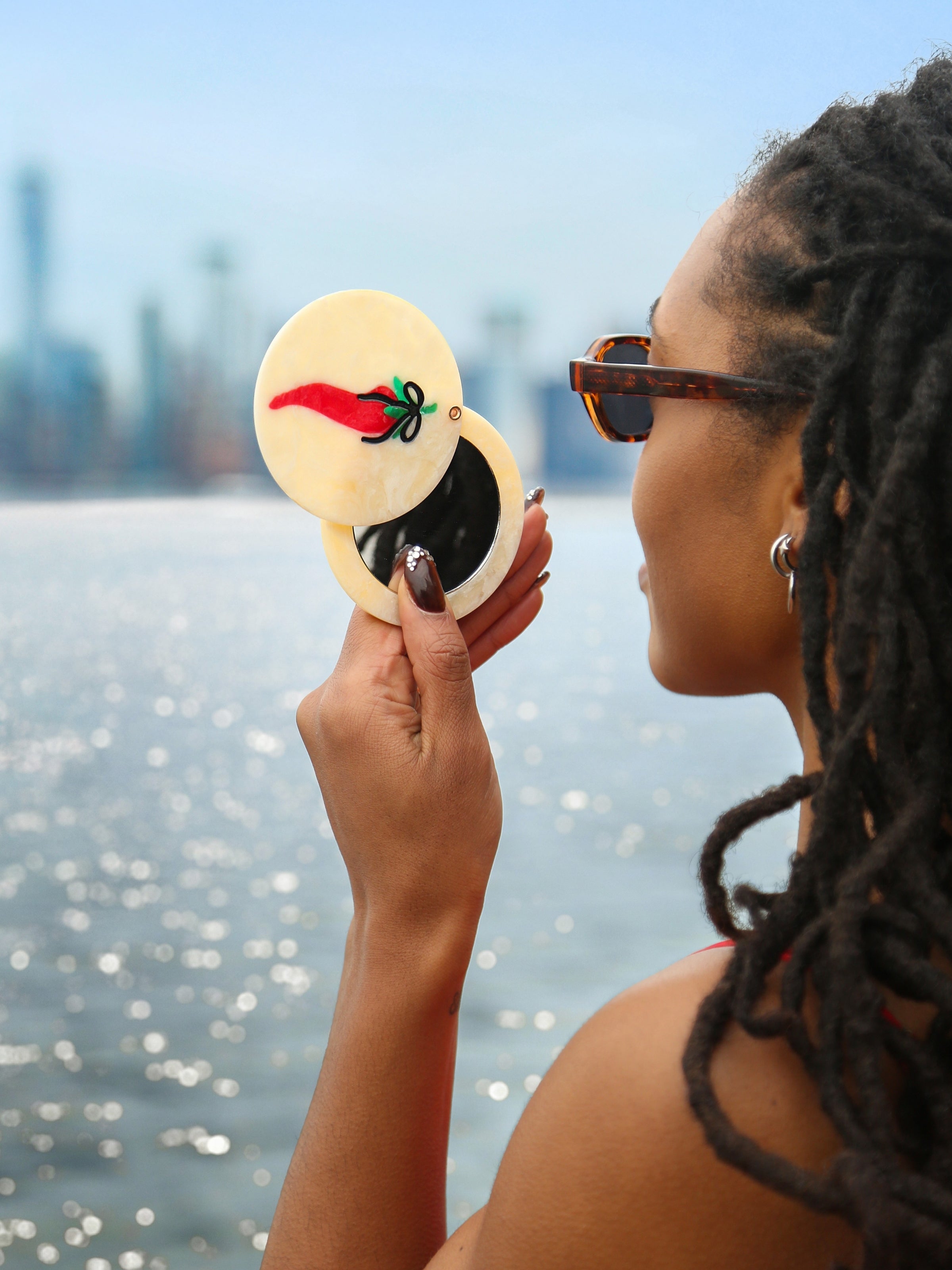 Hand-painted Pepper Compact Mirror | Eco-Friendly