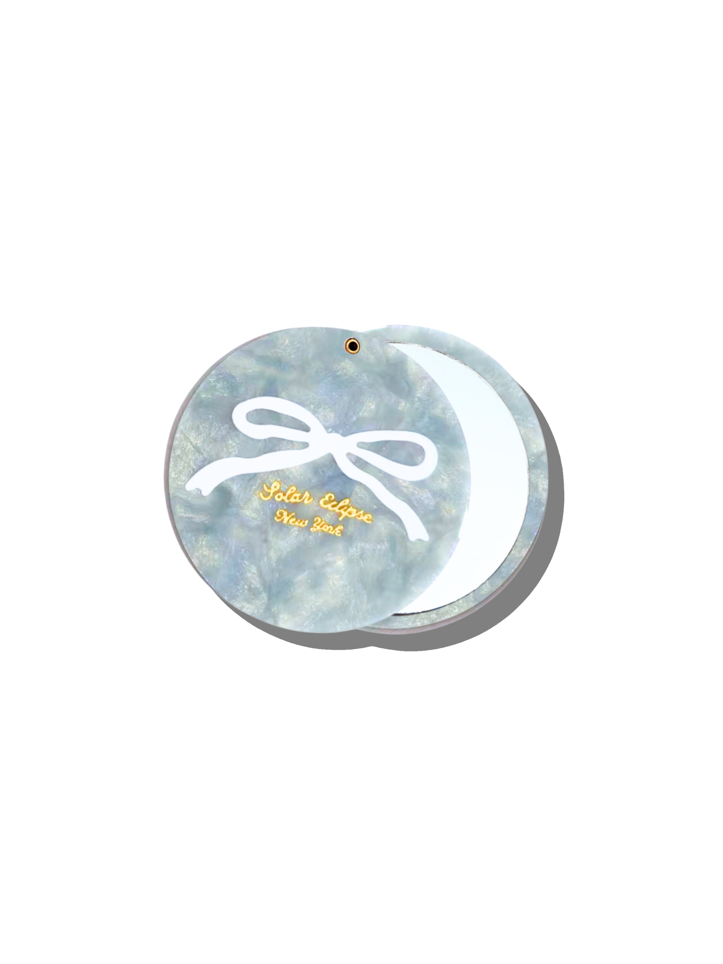 Hand-painted Baby Blue Bow Compact Mirror | Eco-Friendly