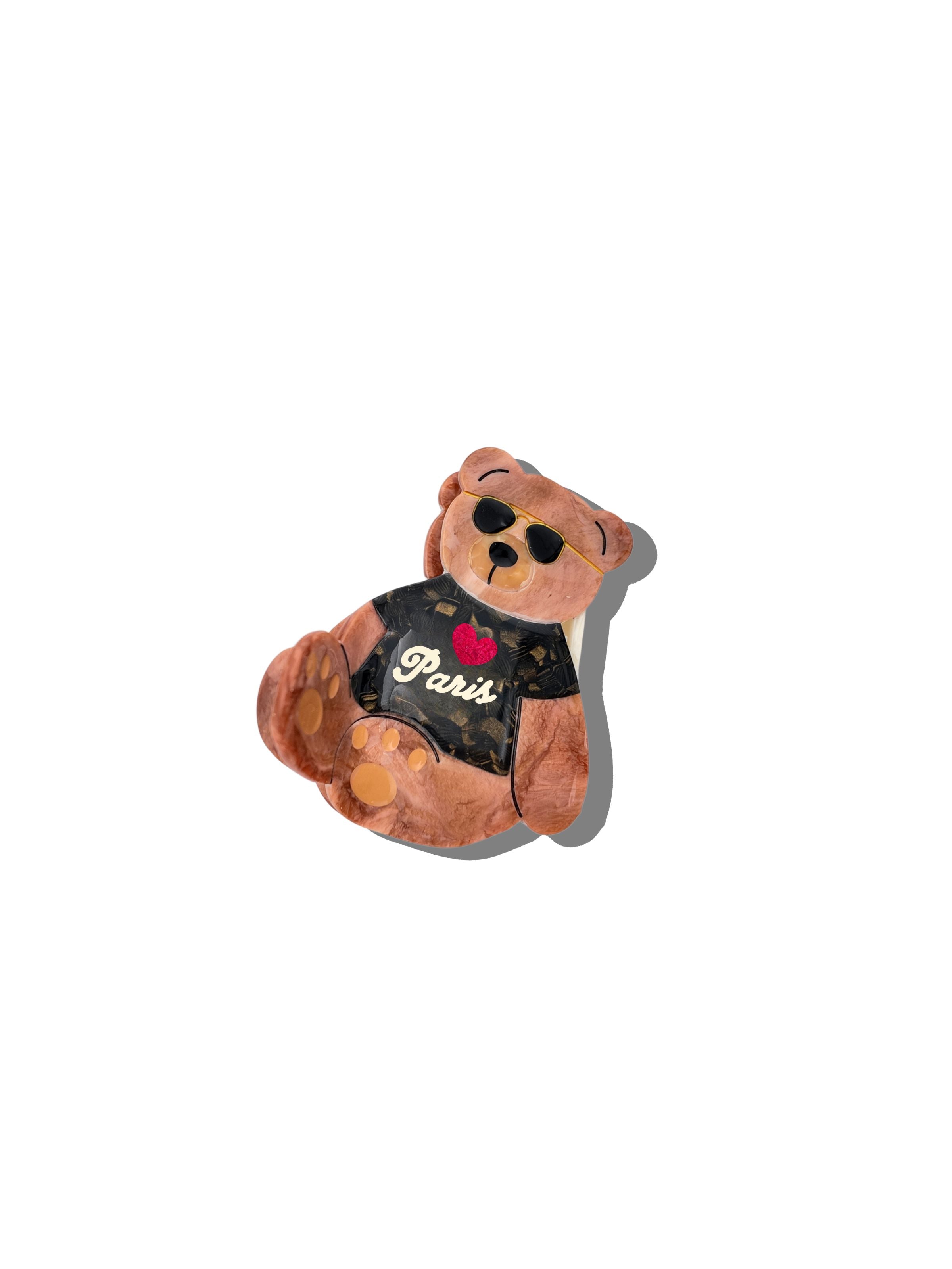 Hand-painted Paris Teddy Bear Claw Hair Clip | Eco-Friendly