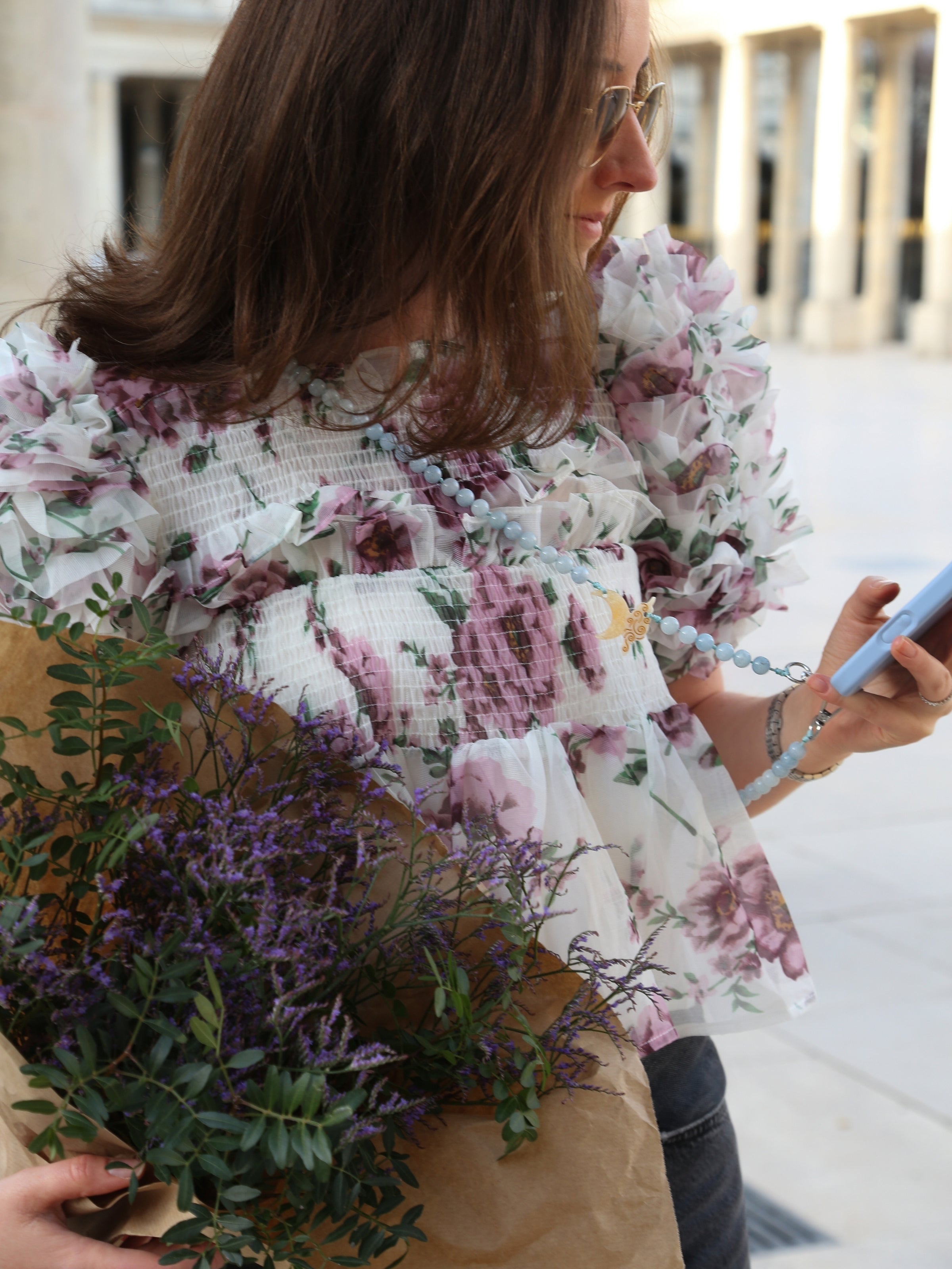 Hand-painted Dianthus Crossbody Phone Chain