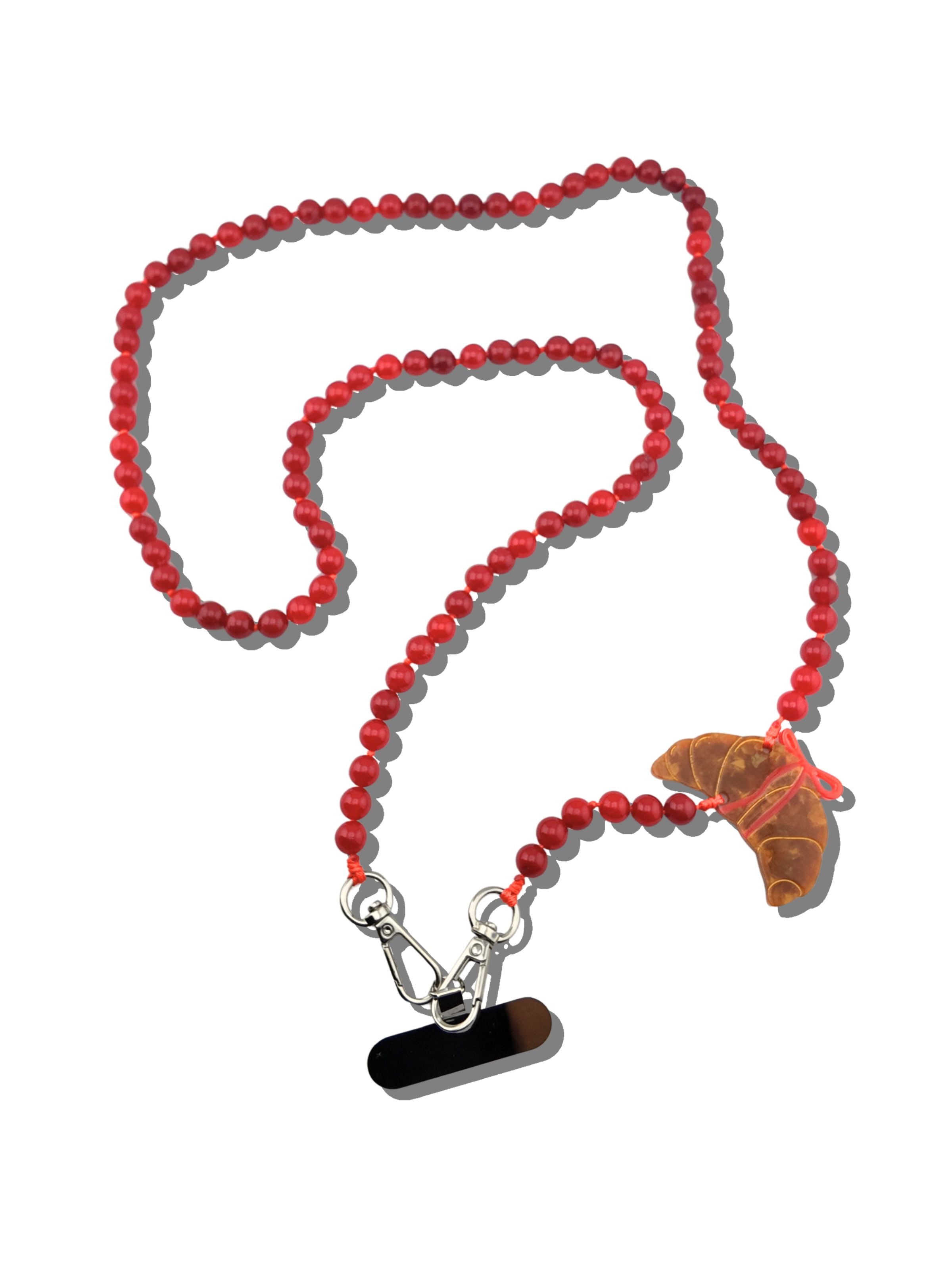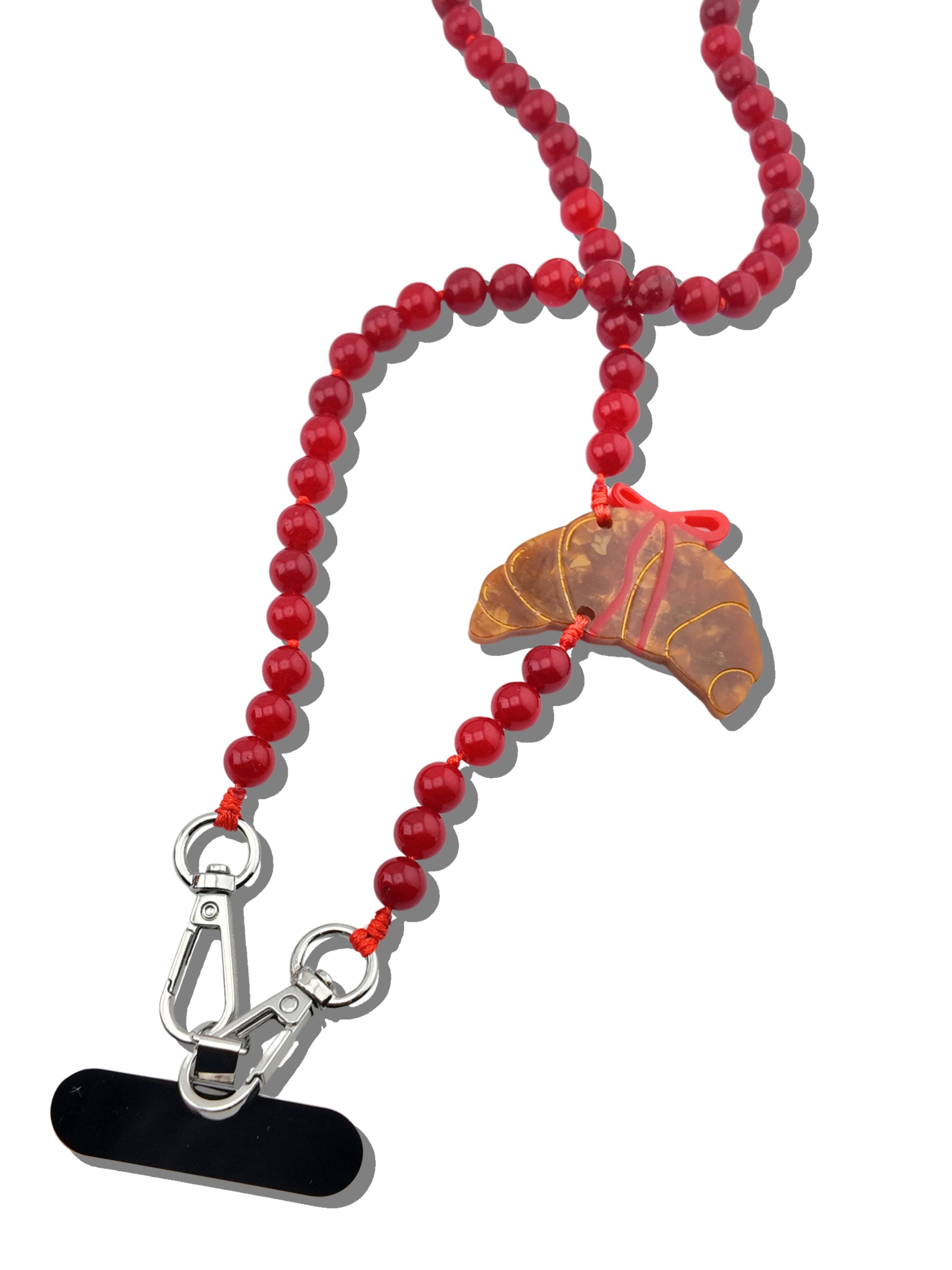 Hand-painted Bow Croissant Gemstone Crossbody Phone Chain