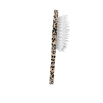 Vegan boar-like bristles distribute natural oils and smooth hair, while flexible pins gently detangle and massage the scalp.
