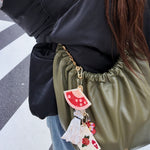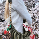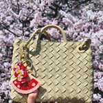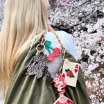 Graceful, timeless, and steeped in tradition. The Blossom Fan Bag Charm is inspired by the delicate artistry of folding fans and the fleeting beauty of cherry blossoms in Japan. Hand-painted on both sides and crafted from biodegradable acetate, this piece transforms cultural elegance into a wearable collectible.
