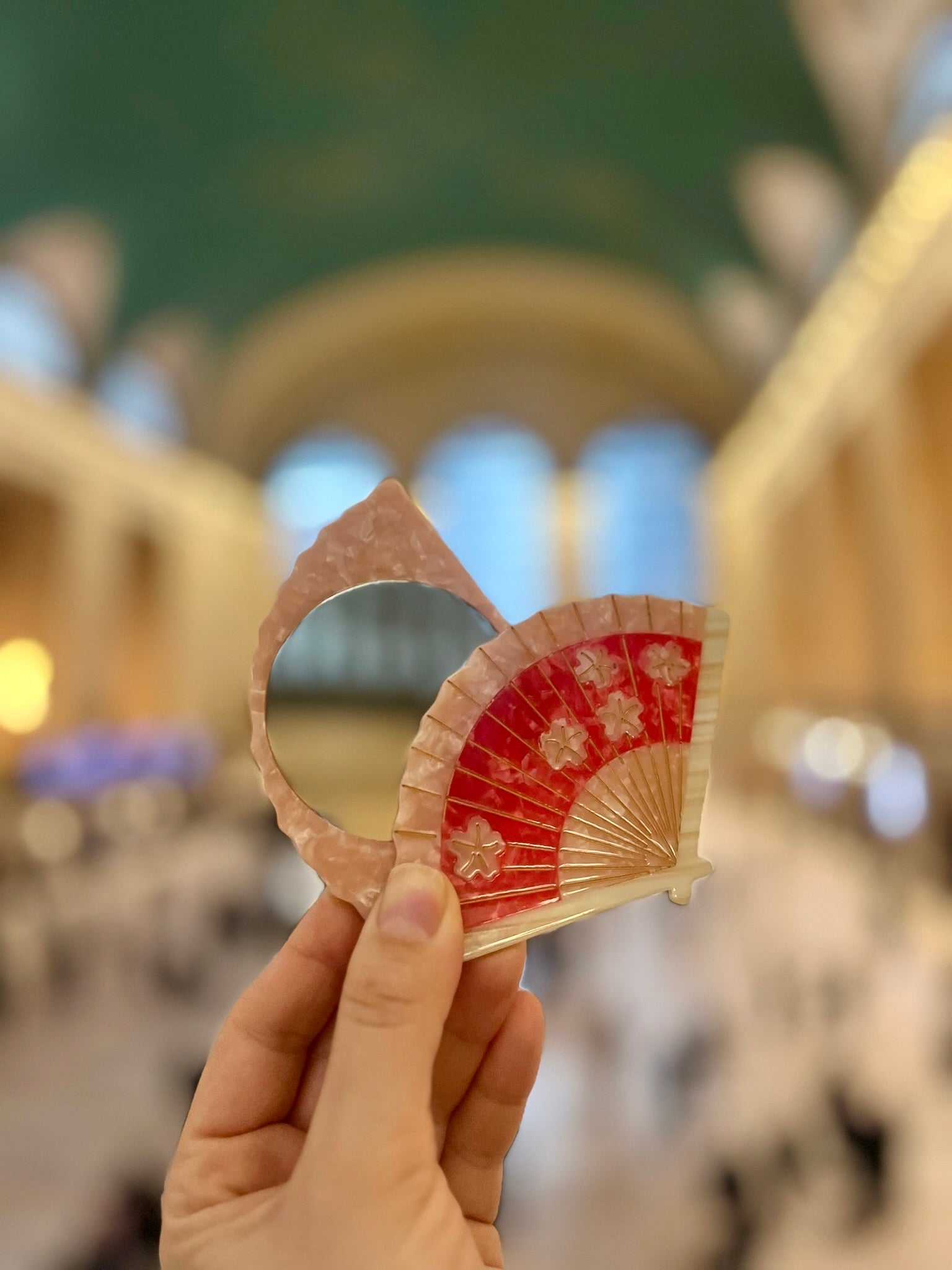 Hand-painted Blossom Fan Compact Mirror | Eco-Friendly