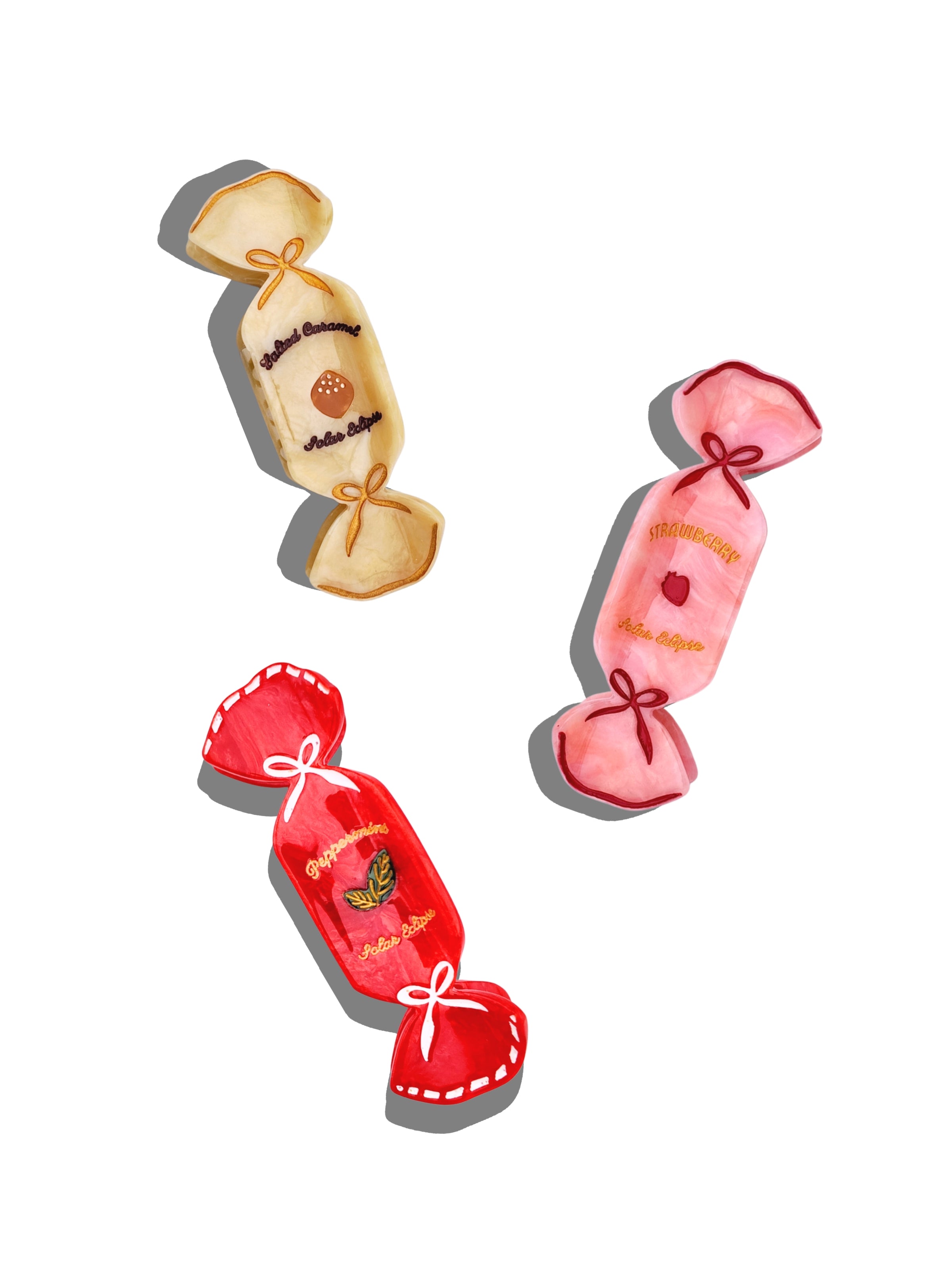 Elegant, timeless, and impossibly sweet—the Candy Claw Clip feels like a treasure from a vintage Parisian confectionery. Available in three decadent flavors—Strawberry, Peppermint, and Sea Salt Caramel—this hand-painted clip is a modern collectible wrapped in old-world charm.