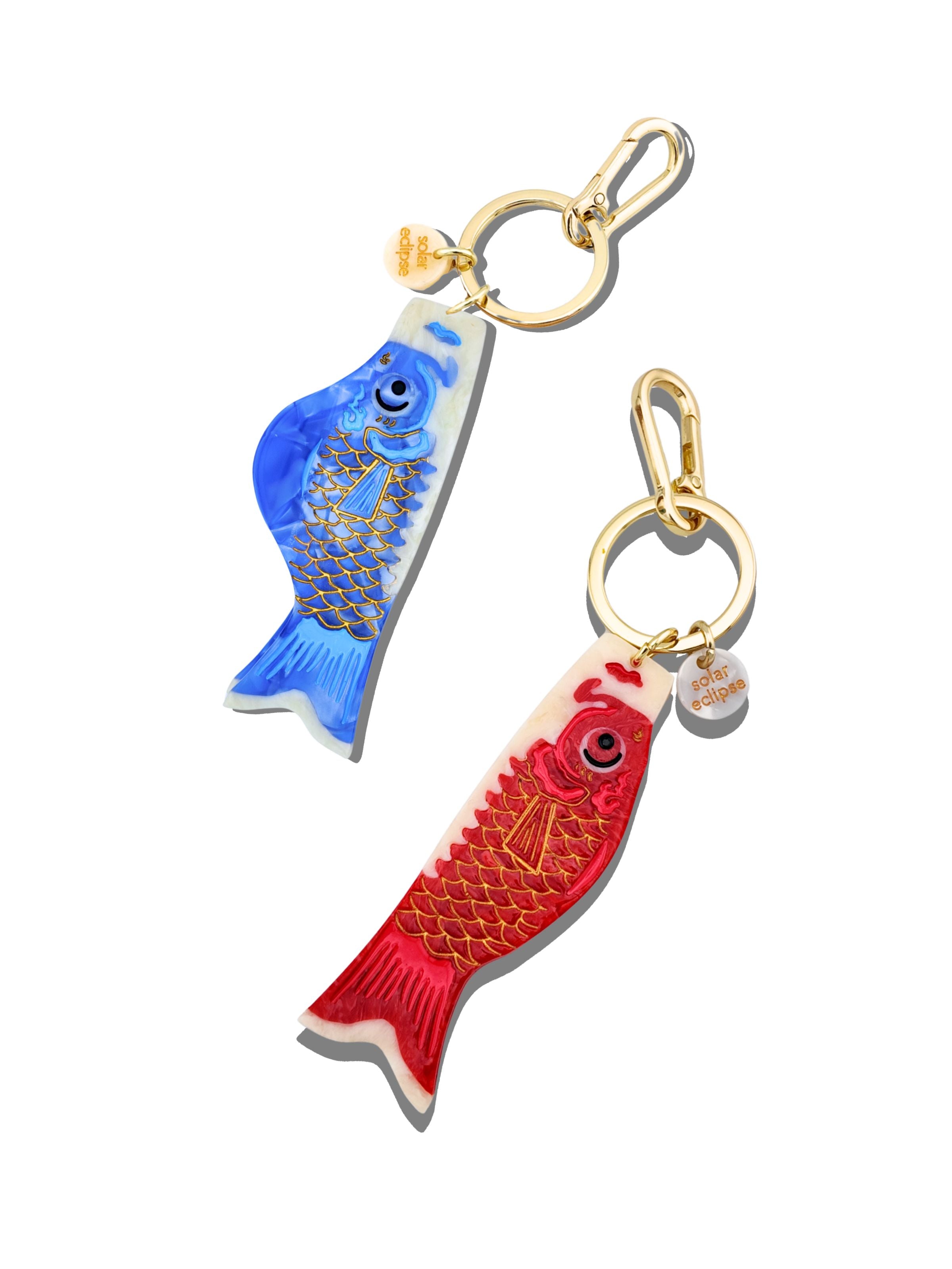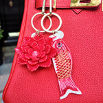 Hand-painted Japanese Carp Bag Charm + Keychain | Eco-friendly