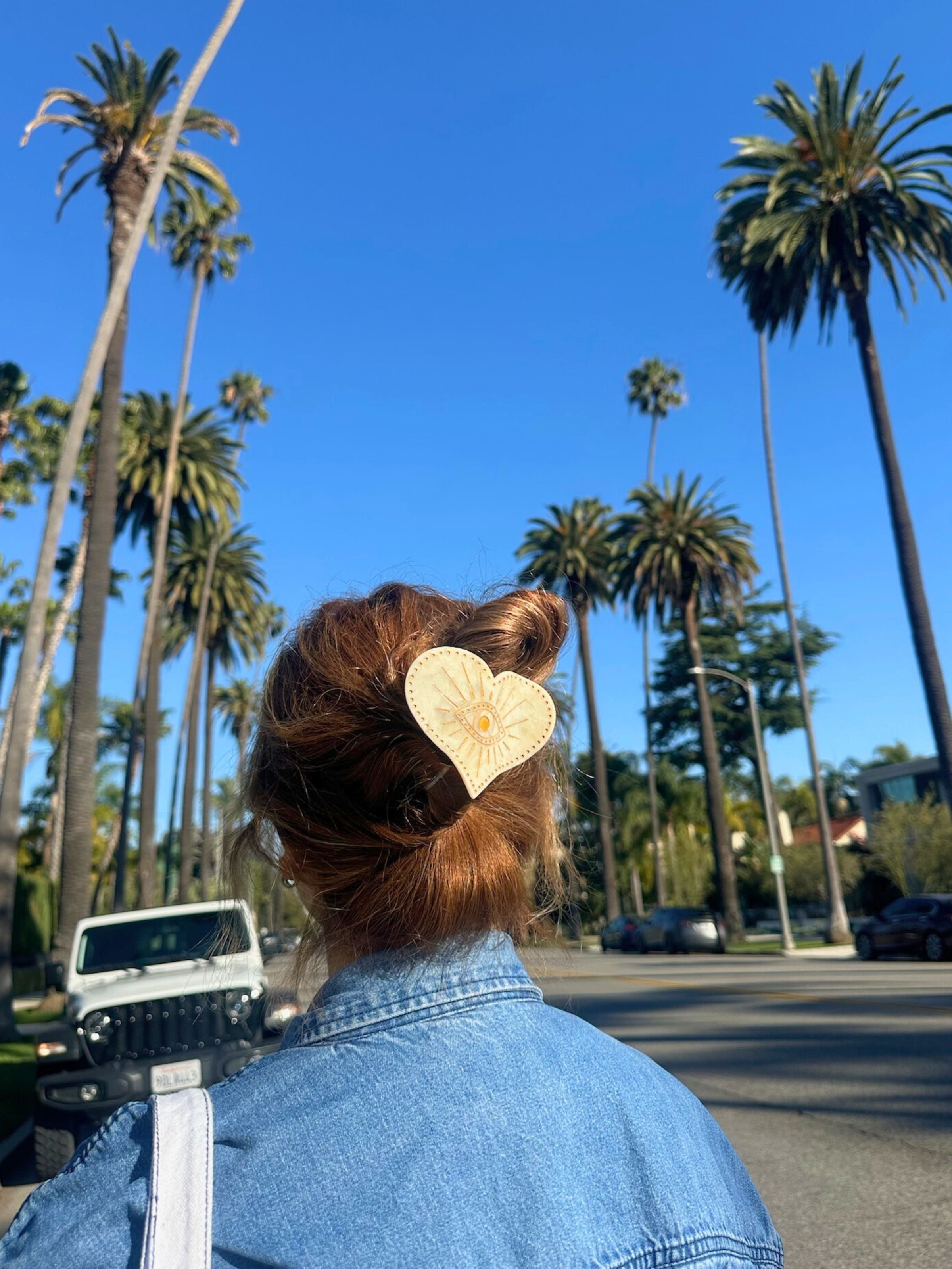 Thoughtfully designed in NYC and crafted in small batches, it features our hand-painted Celestial Heart artwork—an abstract take on softness and edge. Made from biodegradable cellulose acetate, it’s lightweight, sculptural, and made to last.
