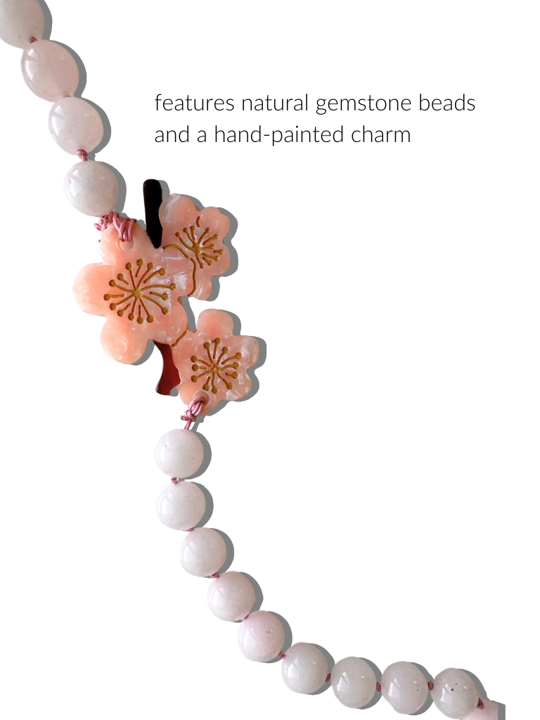 Hand-painted Cherry Blossom Gemstone Bracelet Phone Chain
