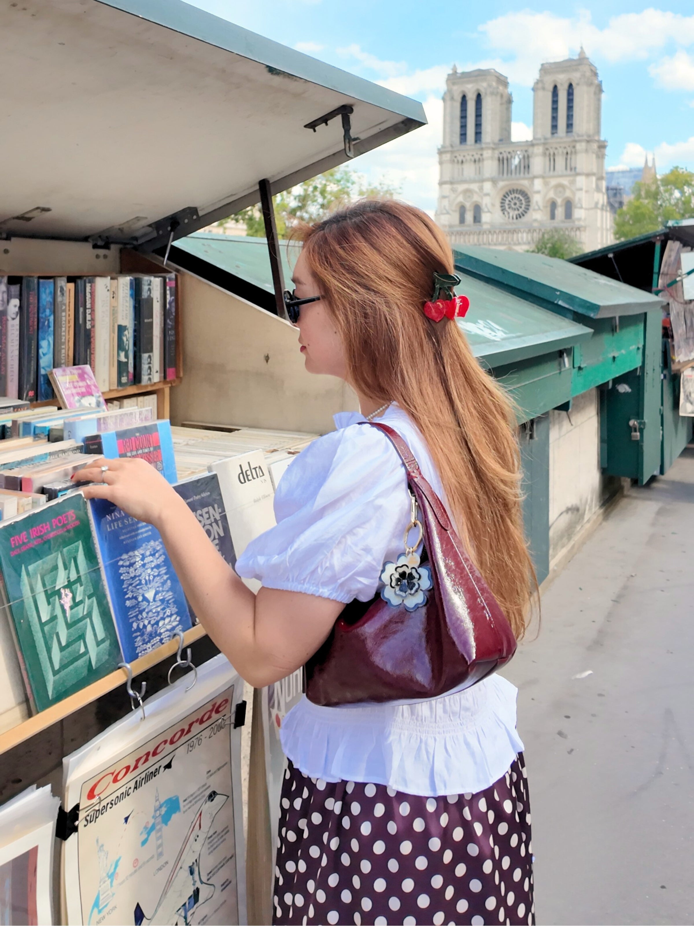Hand-painted Cherry Hearts Hair Claw Clip | Eco-Friendly