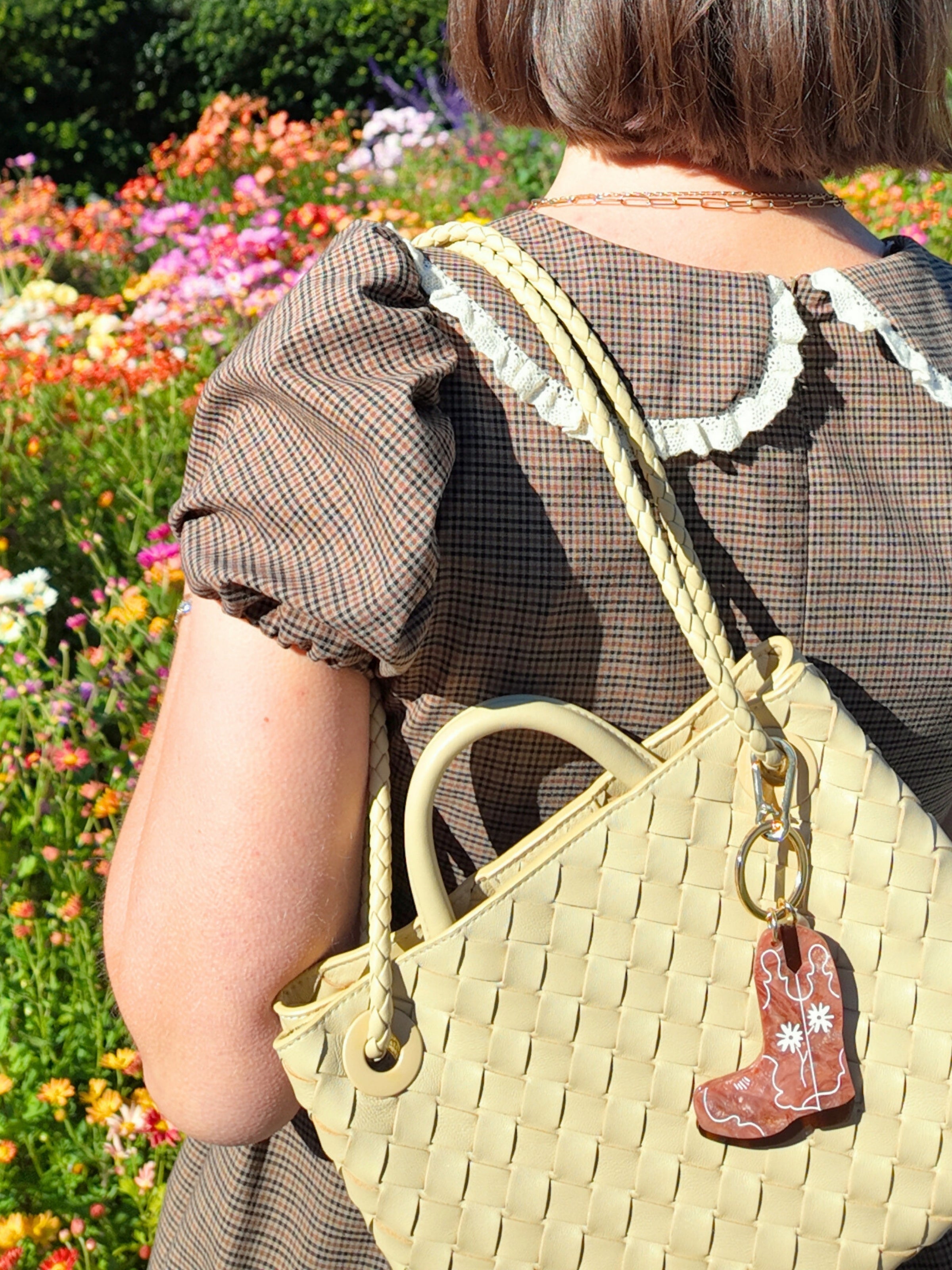 Hand-painted Daisy Cowboy Boot Bag Charm + Keychain | Eco-Friendly
