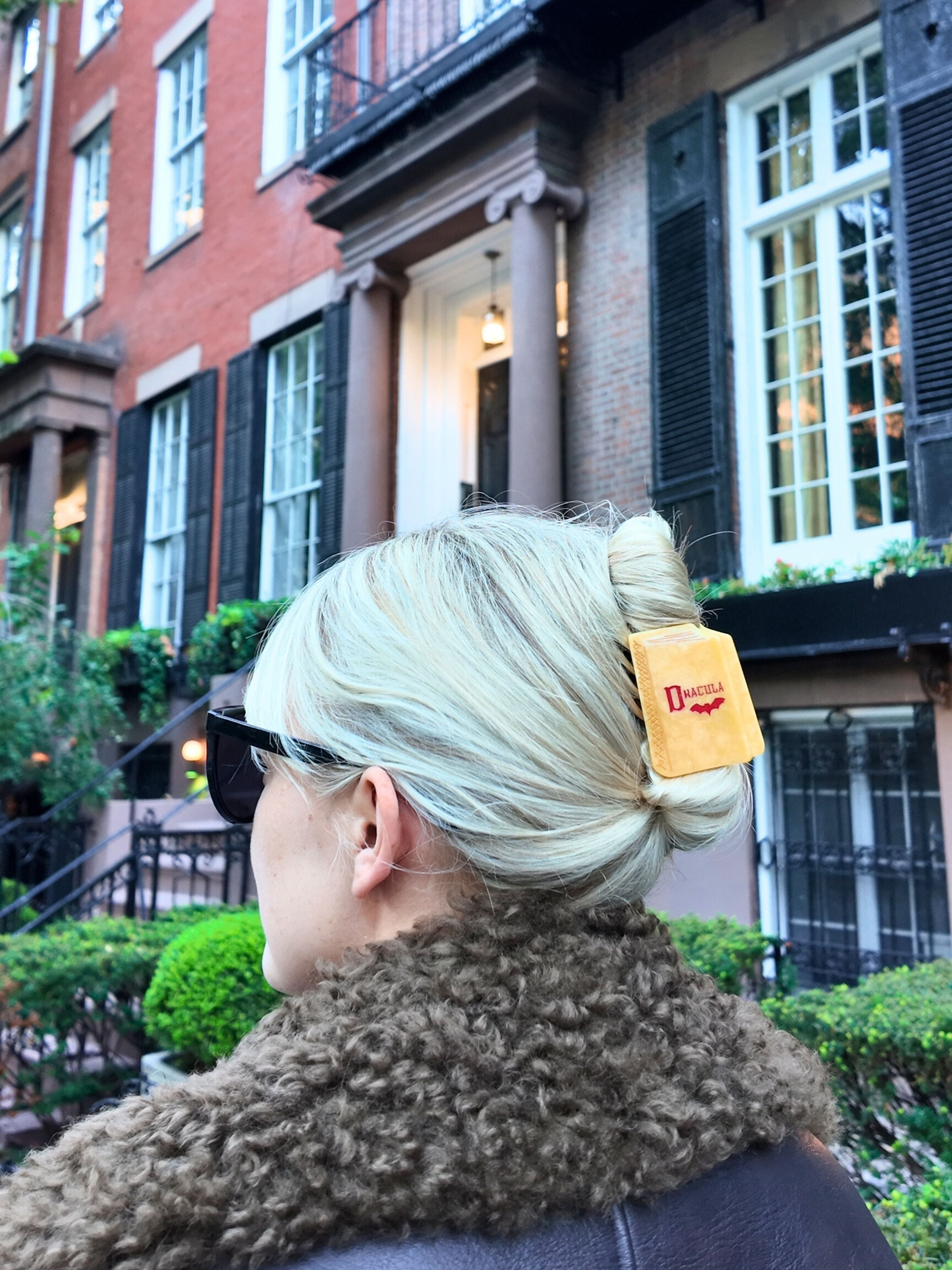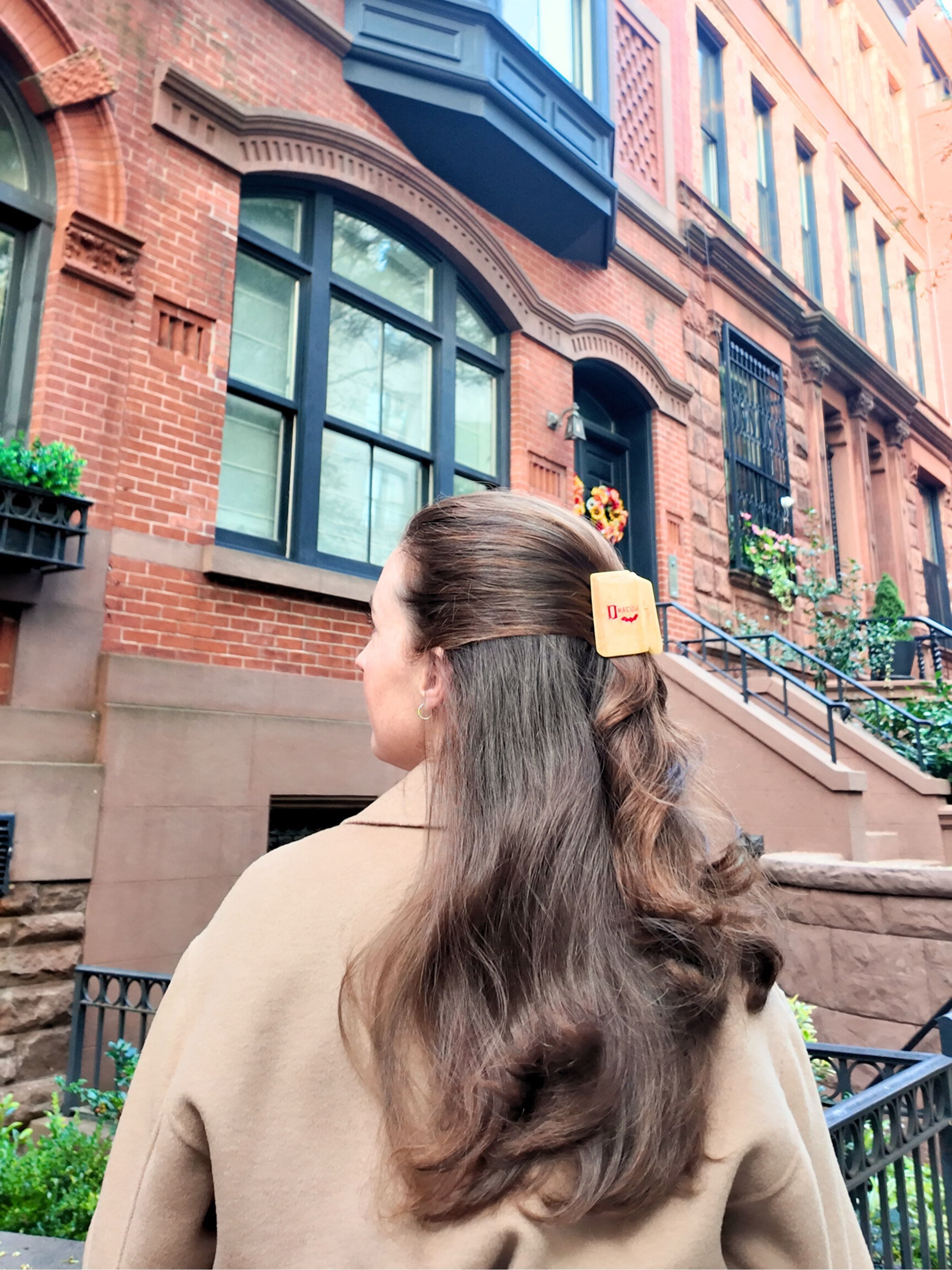 Designed in New York City and crafted in small batches, it brings a touch of vintage bookstore intrigue to your everyday look. Made from eco-friendly, biodegradable cellulose acetate (sourced from recycled wood pulp), it’s both sustainable and strong. The extra-strong hinge ensures a secure hold, keeping your hair perfectly in place from sunrise to sunset (or after dark).