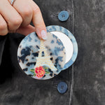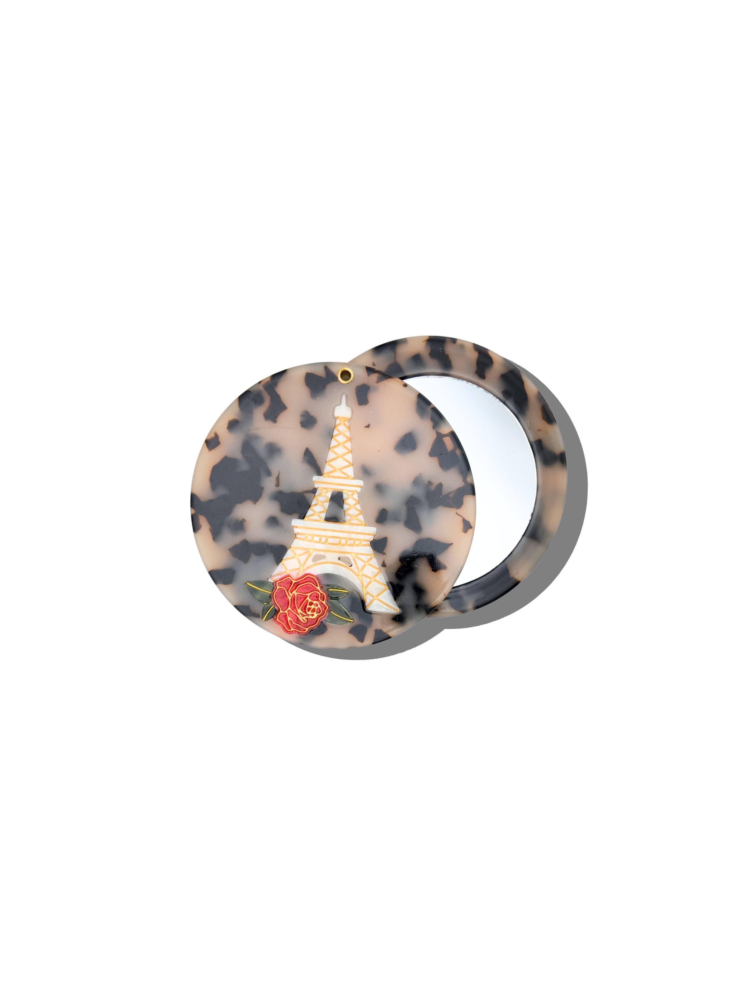 Each compact mirror features an original, hand-painted design by the artists at Solar Eclipse. Eiffel Tower pairs iconic Parisian architecture with a delicate rose—melding bold structure and soft romance in one unforgettable, eco-friendly piece.