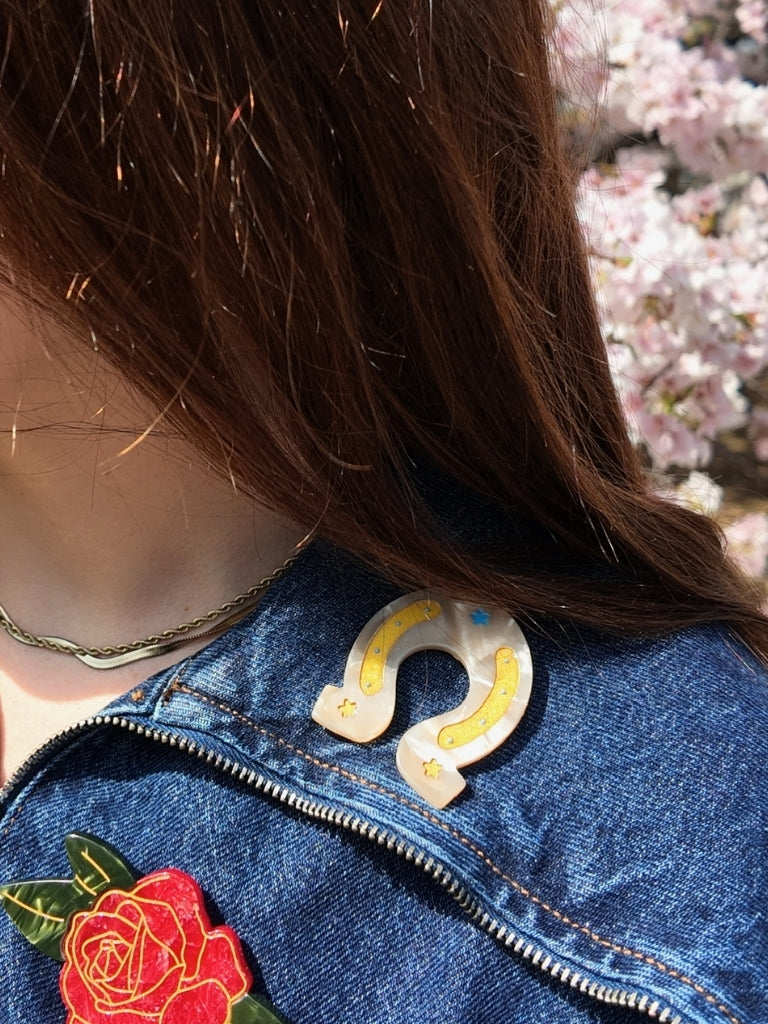 A nod to western icons and lucky legends, our Horseshoe Brooch is a modern-day talisman made to bring good vibes wherever it lands. Equal parts charm and cool, it’s the kind of piece that adds effortless edge to your favorite jacket, scarf, or tote.