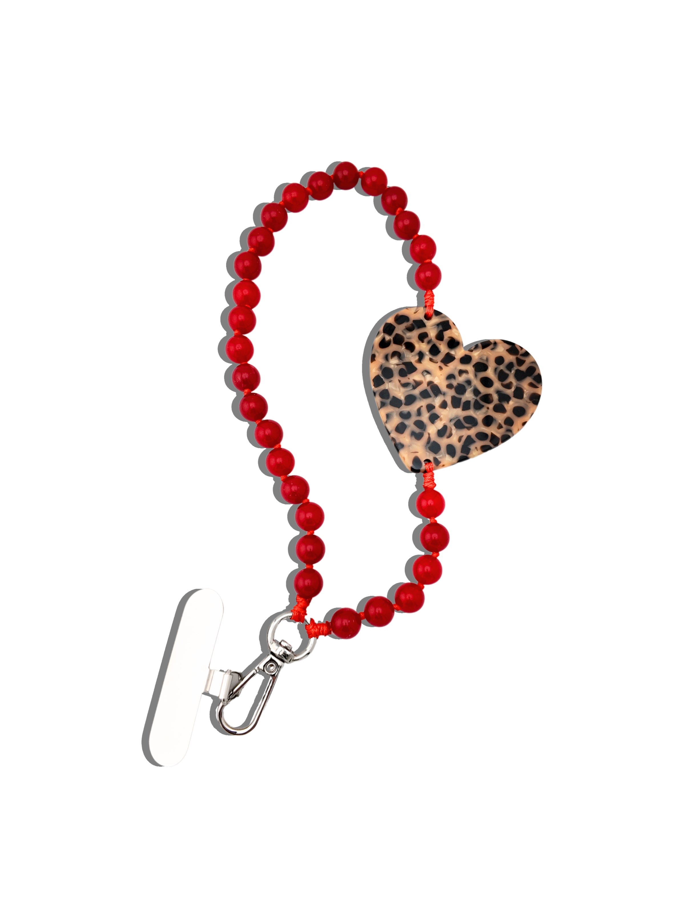 Hand-painted Leopard Heart Gemstone Bracelet Phone Chain