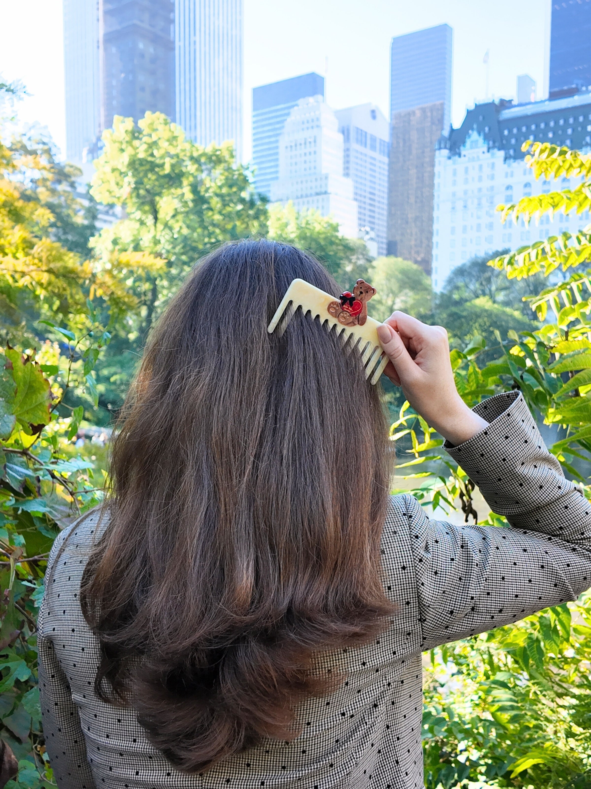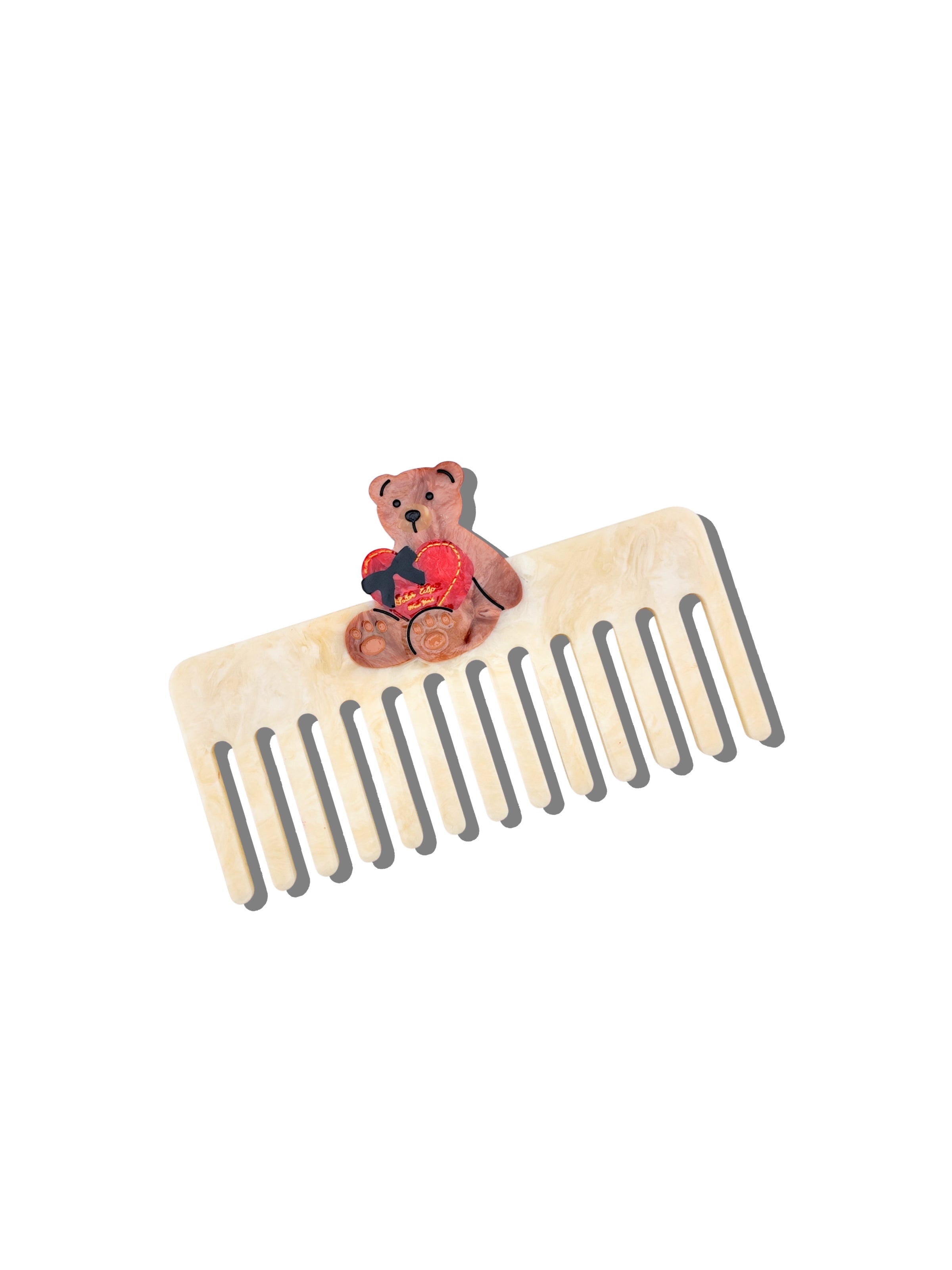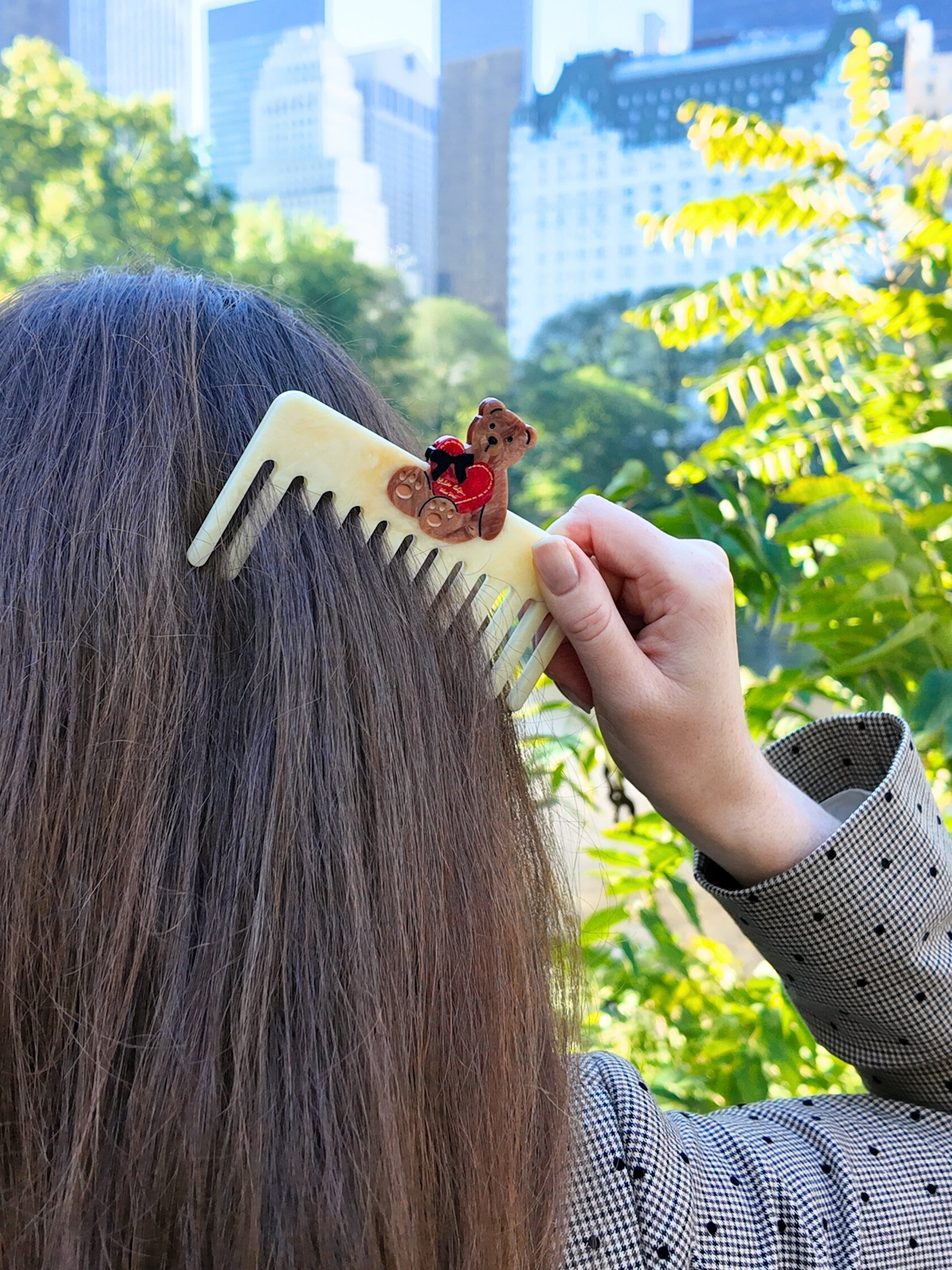 The Hand-painted Love Teddy Wide Tooth Comb brings a touch of elegant, eco-conscious, and designed to be adored—this little bear does a lot.