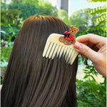 Crafted in small batches, this double-sided comb is compact, lightweight, and perfect for on-the-go styling. It features detangling teeth that glide effortlessly through wet or dry hair, and gently curved Gua Sha-inspired tips designed to massage the scalp, reduce tension, and promote circulation for healthier roots.