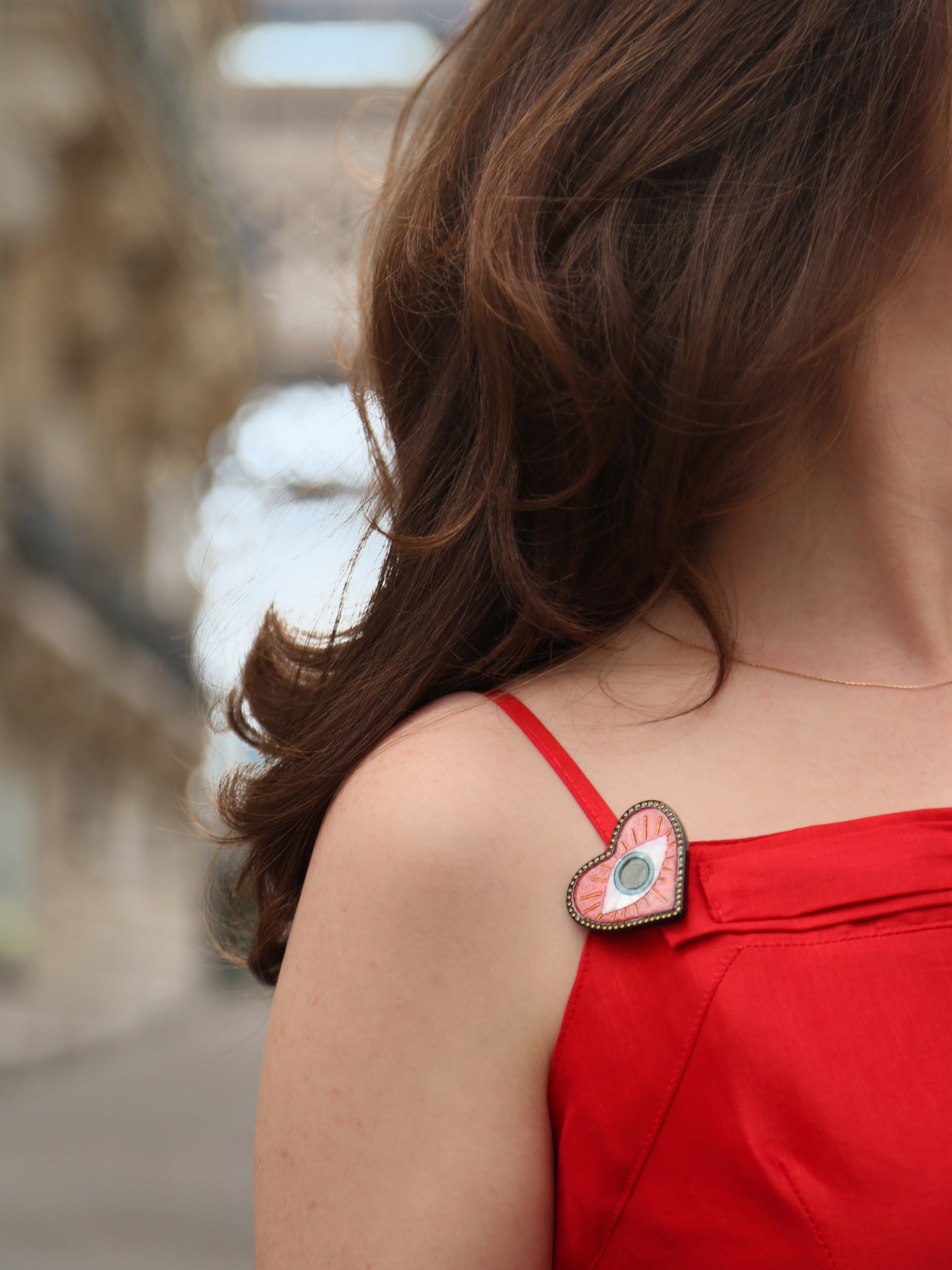 A symbol of love, luck, and protection—all in one. Our Lucky Evil Eye Heart Brooch blends iconic motifs into one powerful little pin, featuring a bold red heart with an all-seeing eye at its center.
