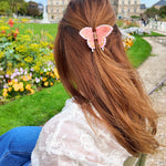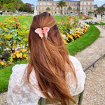A fresh take on our bestselling silhouette, this mini version brings the same graceful shape and hand-painted artistry you love—now in a soft, nostalgic pink made to elevate everyday looks. Perfect for half-up styles, finer hair, or adding a delicate pop of color to your routine.
