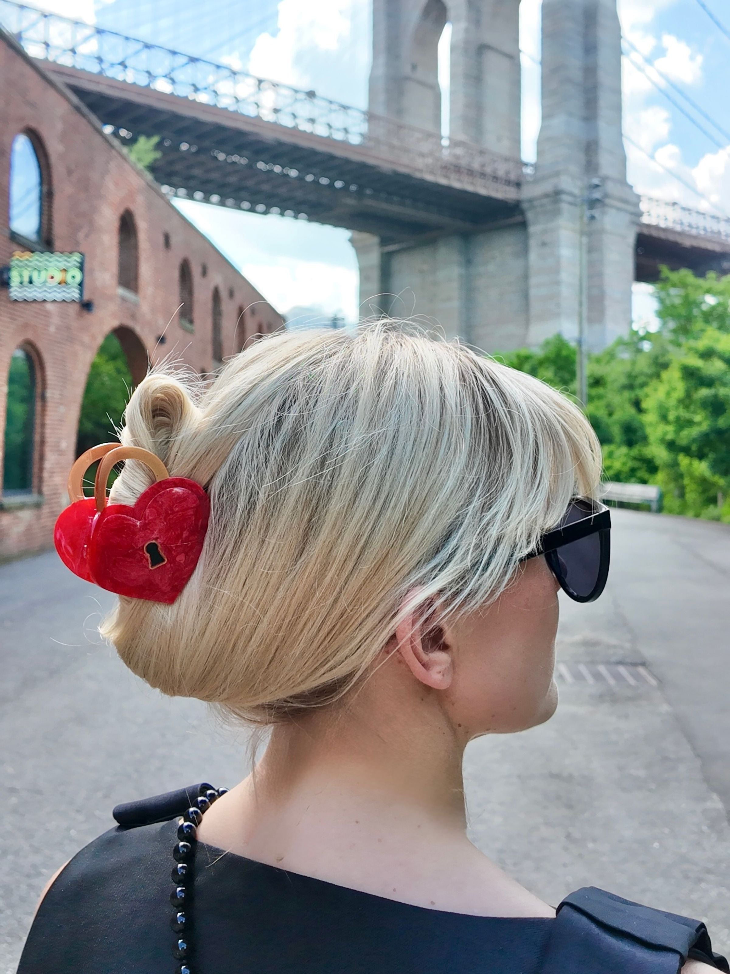 Hand-painted Padlock Heart Hair Claw Clip | Eco-Friendly