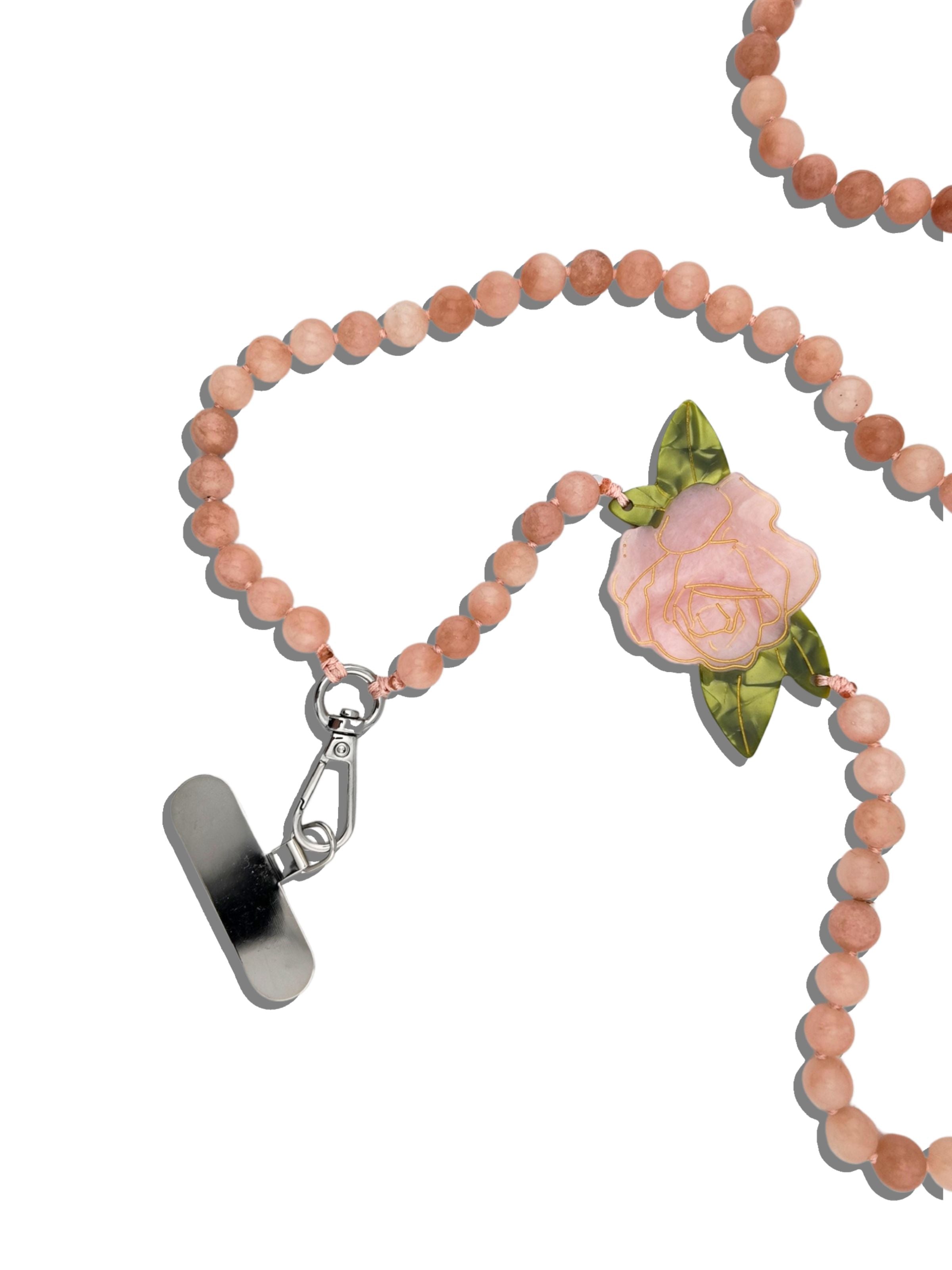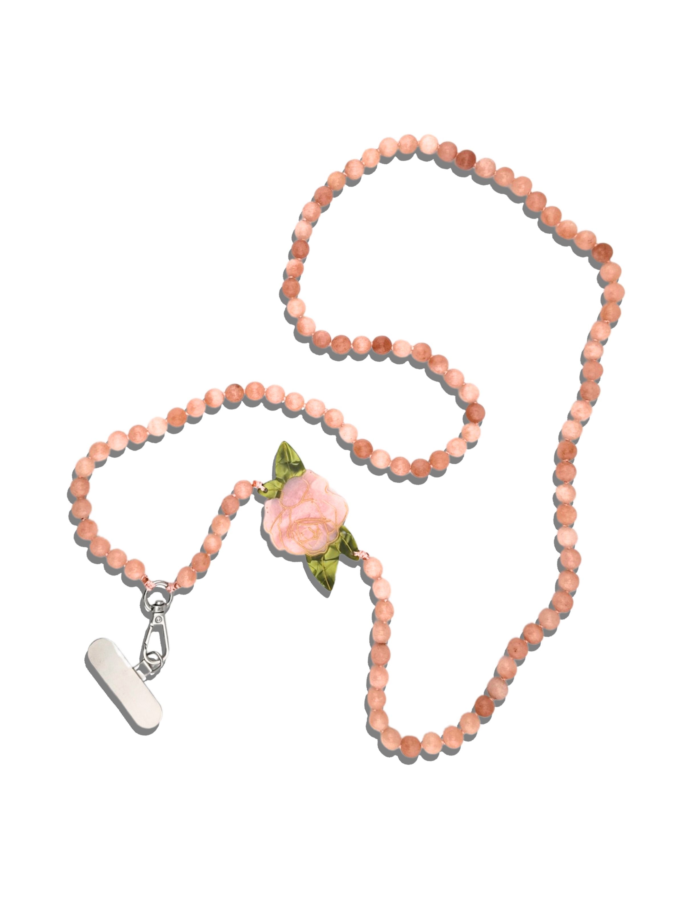 Hand-painted Pink Rose Gemstone Crossbody Phone Chain