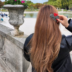 Crafted in small batches, this double-sided comb is compact, lightweight, and perfect for on-the-go styling. It features detangling teeth that glide effortlessly through wet or dry hair, and gently curved Gua Sha-inspired tips designed to massage the scalp, reduce tension, and promote circulation for healthier roots.