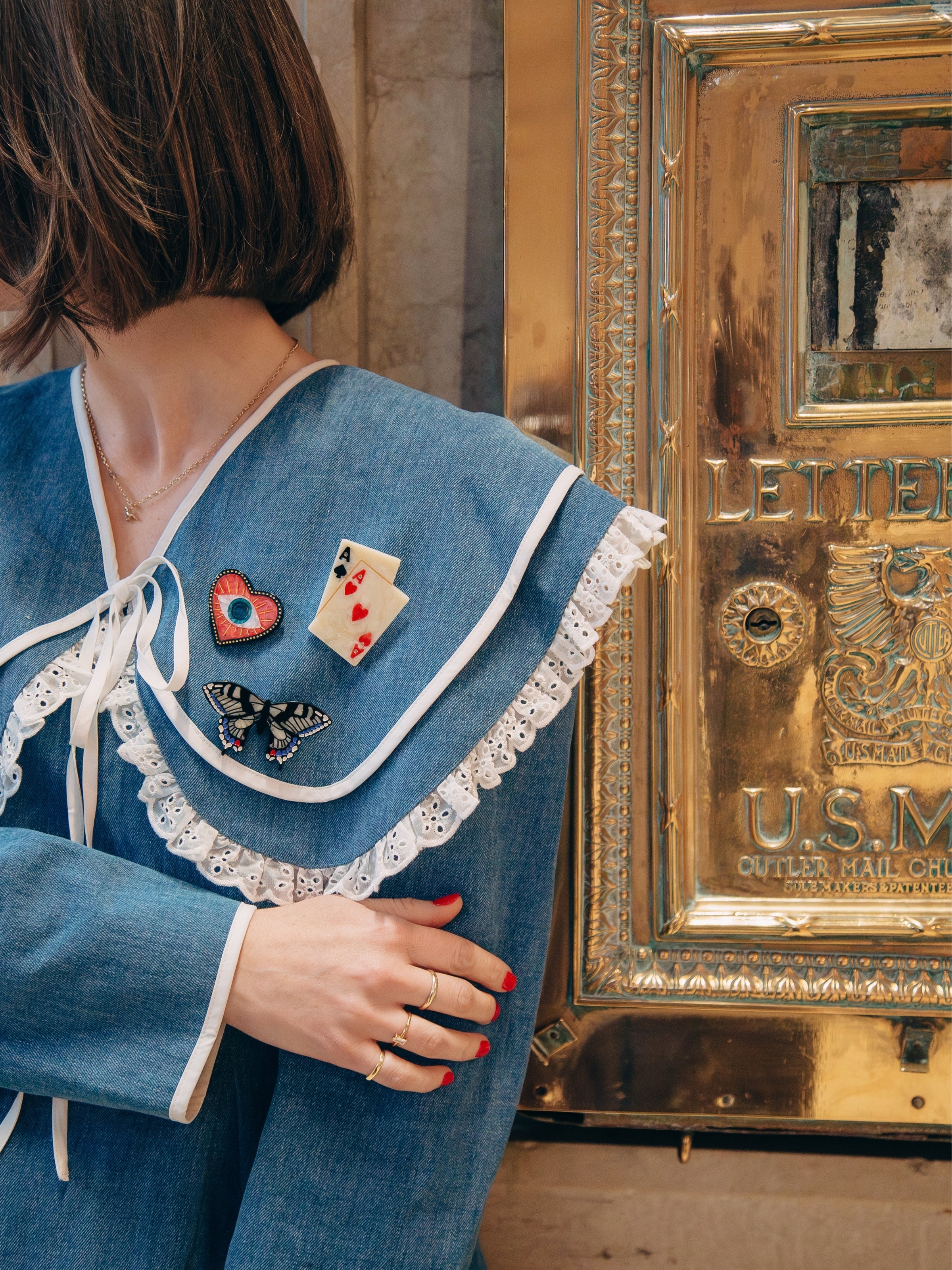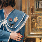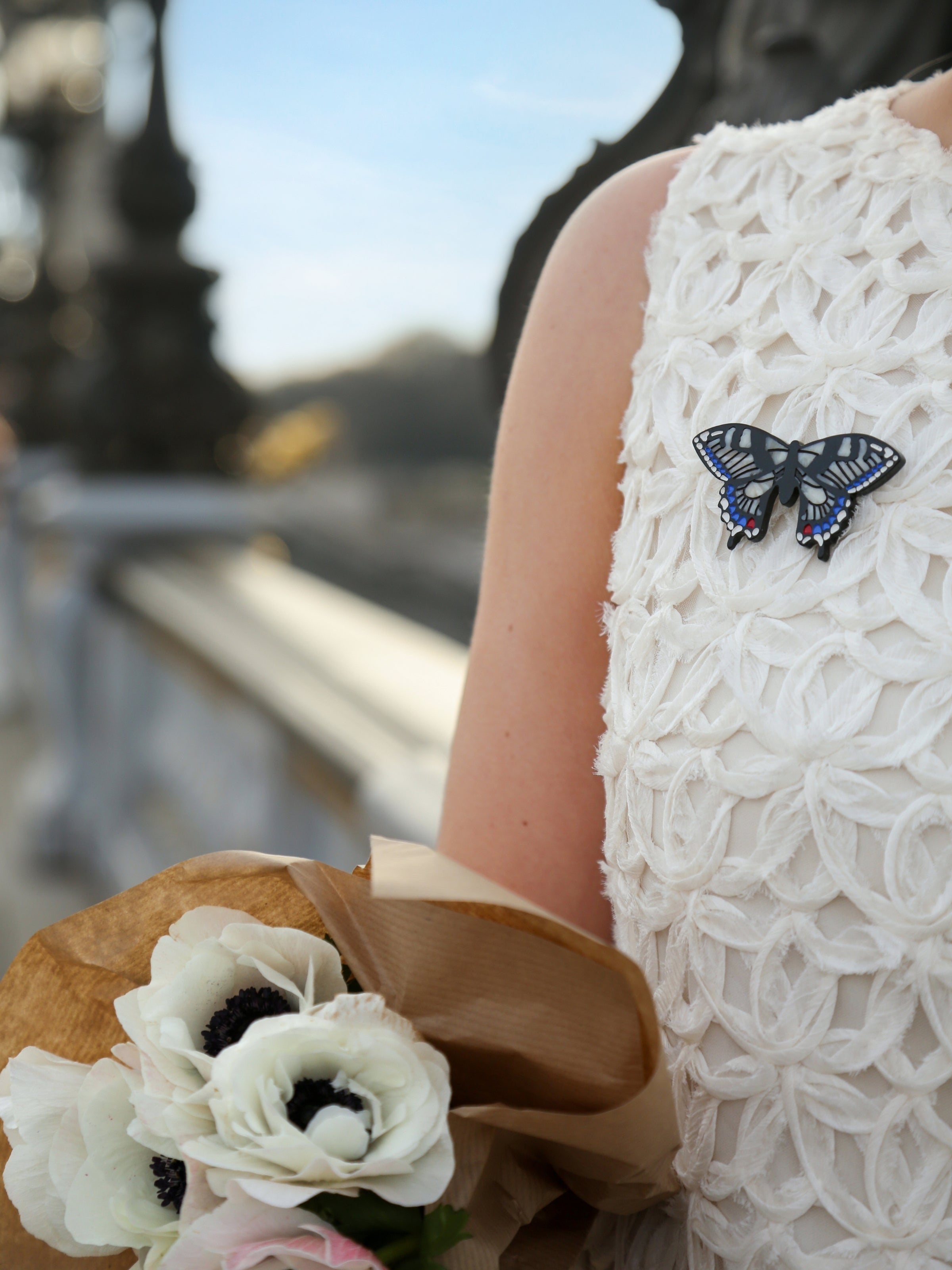 Hand-painted by our Solar Eclipse artists and designed in NYC, this original brooch is crafted in small batches from biodegradable cellulose acetate. Lightweight and full of graceful detail, it’s the kind of piece that effortlessly flutters from season to season, mood to mood.