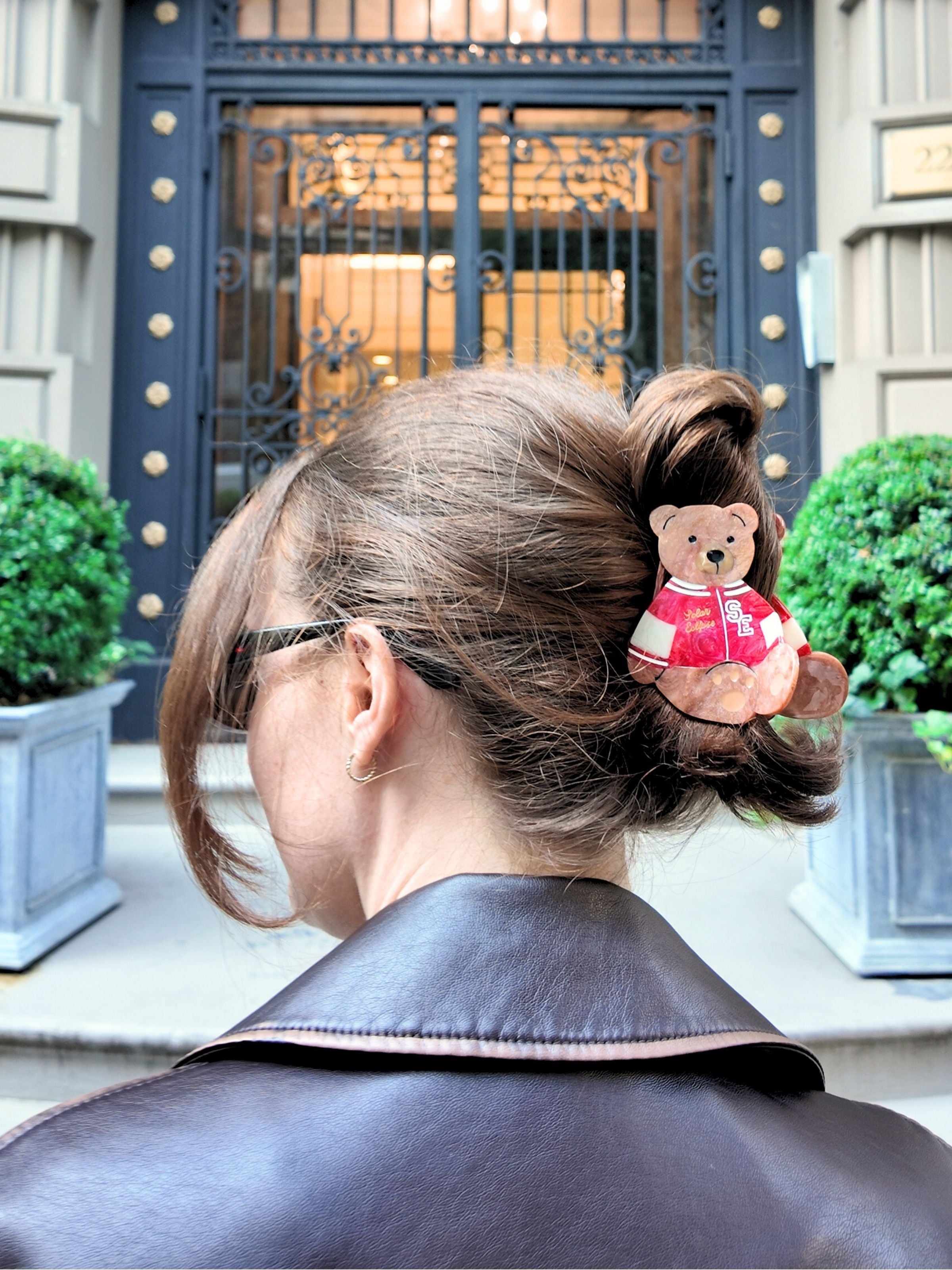 Meet the Varsity Teddy—your new MVP. Hand-painted by our Solar Eclipse artists and crafted in small batches, this claw clip brings vintage collegiate vibes and teddy bear charm to your everyday look. Think letterman jackets, stadium lights, and effortless cool.