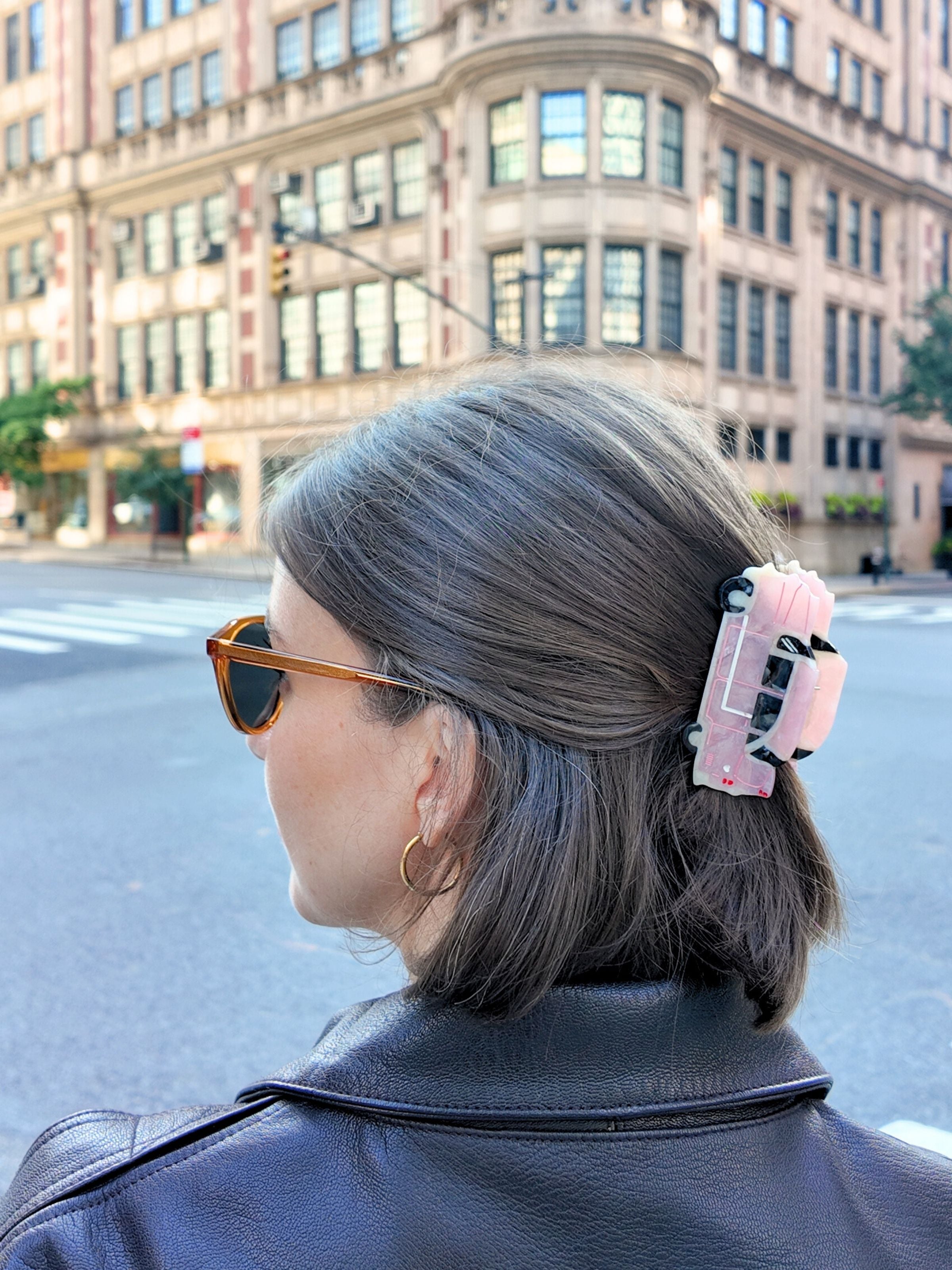 Handmade with our signature biodegradable acetate made from recycled wood pulp, it effortlessly holds hair for a secure all-day style.